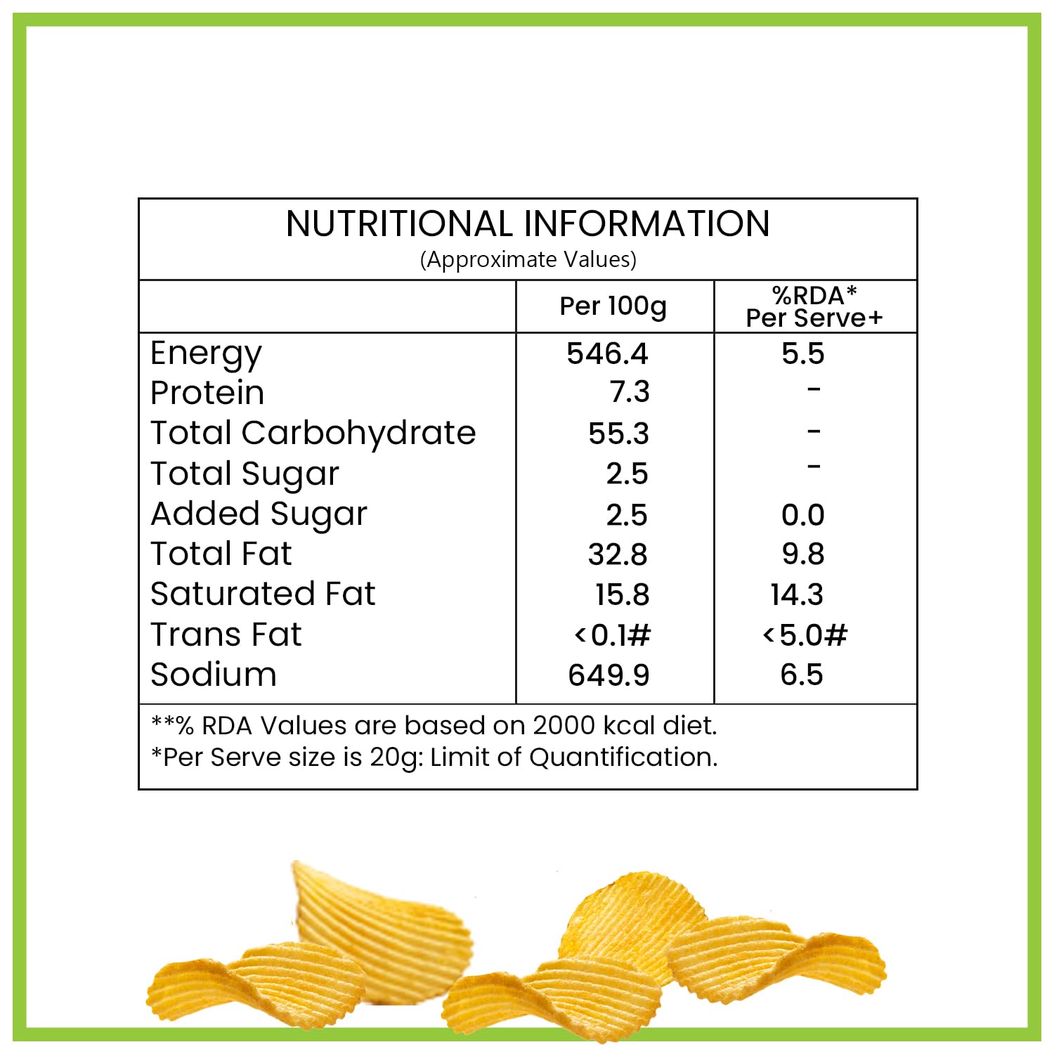 Haldiram's Chips are the perfect snacking companion, with a delicious sour cream and onion flavor and a satisfyingly crunchy texture. Enjoy them anytime and anywhere! This pack is the perfect size for on-the-go snacking. Trust in Haldiram's brand for a tasty and convenient snack.