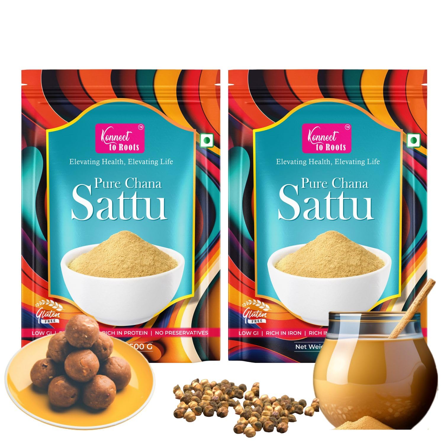 Konnect To Roots Sattu Powder 1kg | Roasted Chana Flour | 100% Natural & Gluten Free Chana Sattu l Roasted Gram Atta with High Fiber | 500gm x2(Pack of 2)