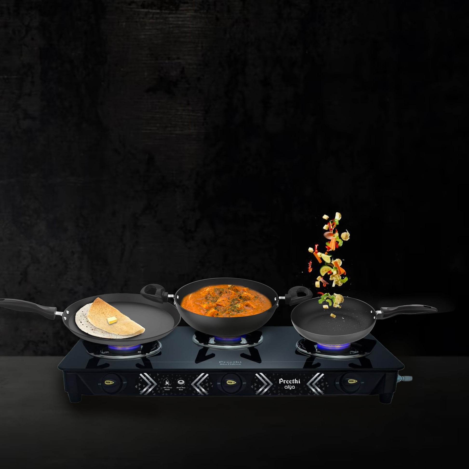 Preethi Dura Collection Non Stick Set, 28 cm Tawa, 26 cm Frying Pan, 26 cm Kadai, with Glass Lid, Gas & Induction Compatible, 5 Star Non Stick Effect, Chilly Red