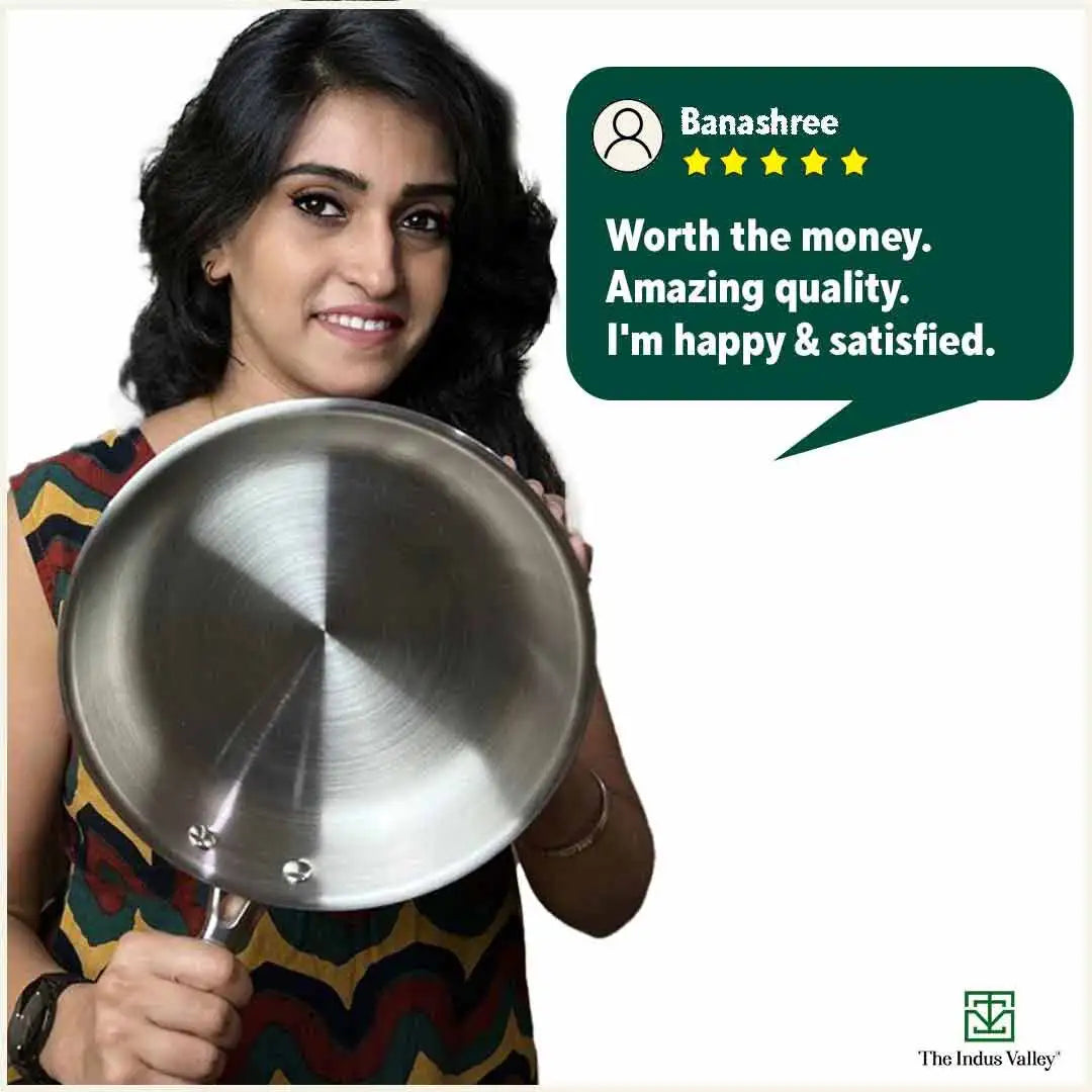 😎THE BEST CHOICE: Cooking healthy food is thus easier, hassle-free and without any chemicals! Definitely, the best Stainless Steel Fry Pan and Kadai!! Don’t forget to check out The Indus Valley’s amazing stainless steel cookware sets as well!