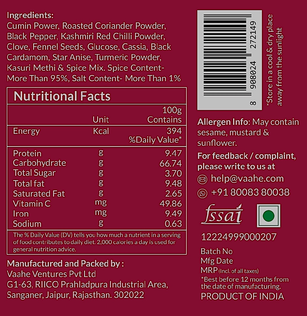 Our Chhole Masala blend gives a rich, aromatic flavor that brings life to your chickpea dishes. This spice mix adds depth and warmth and makes your meal finger licking good. Ideal for making authentic chhole, curries, and stews.