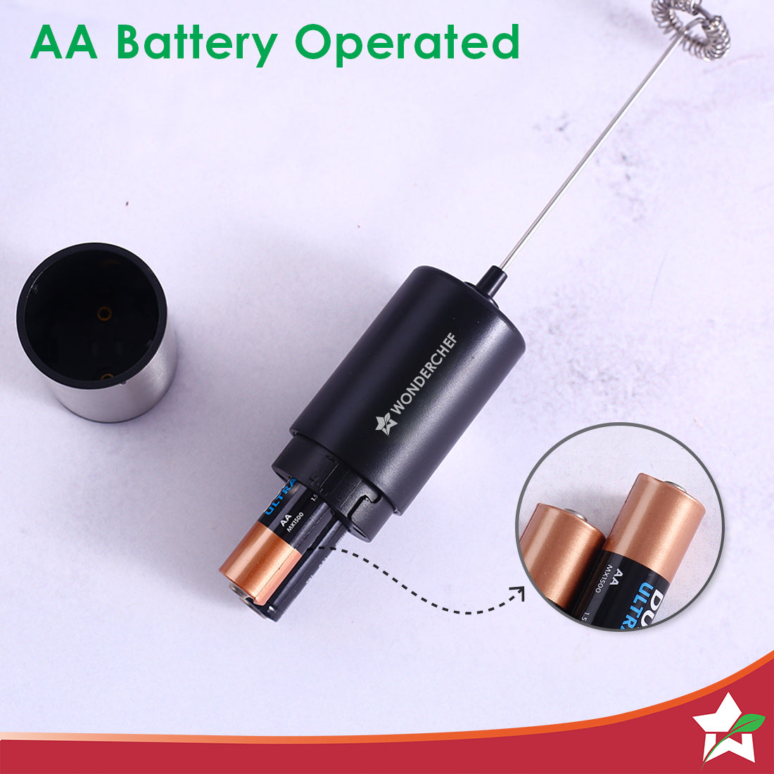 Forget the worry about cords and finding sockets, this frother is battery-powered. Just install AA batteries and begin frothing.