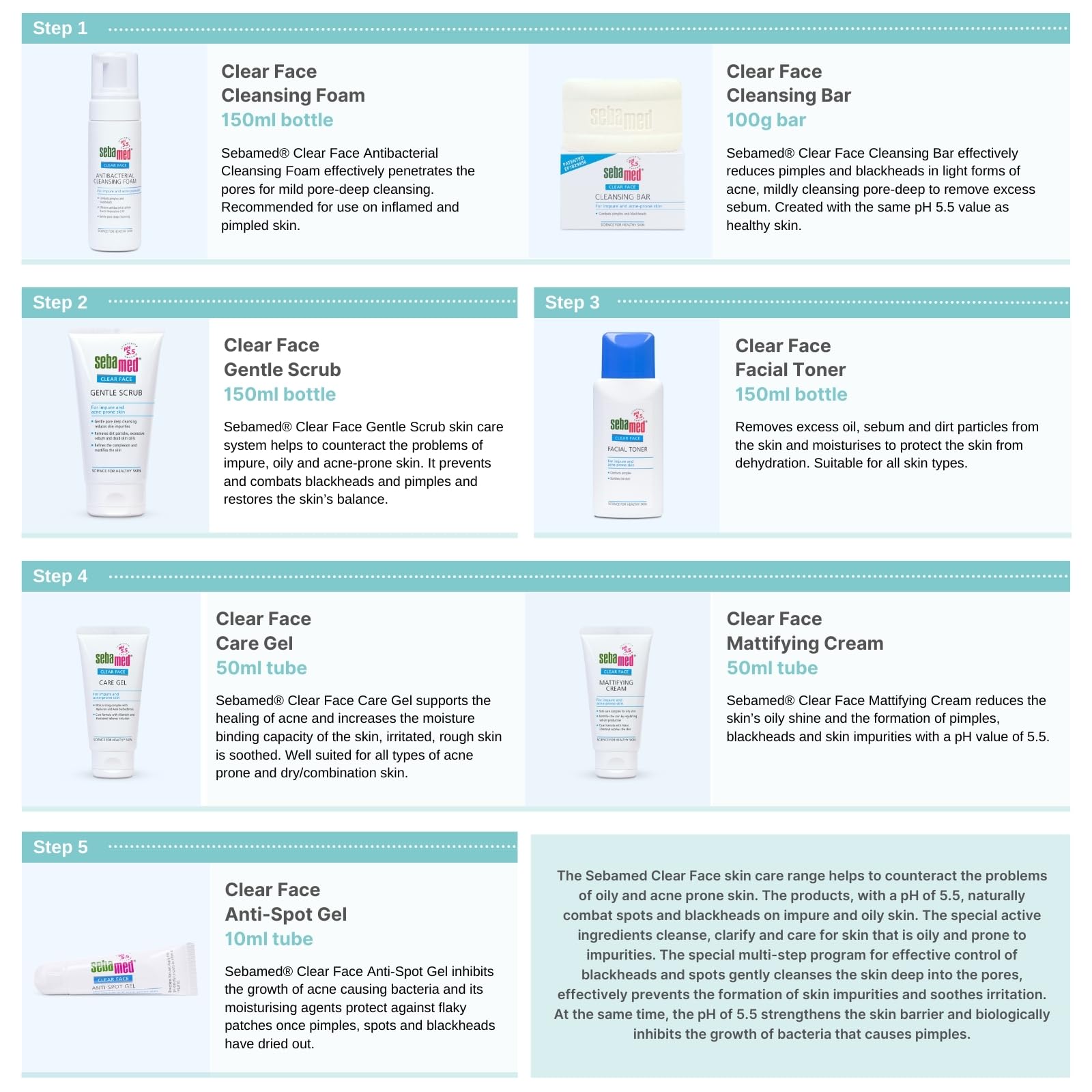 - Combats the proliferation of acne causing bacteria with the pH value of 5.5