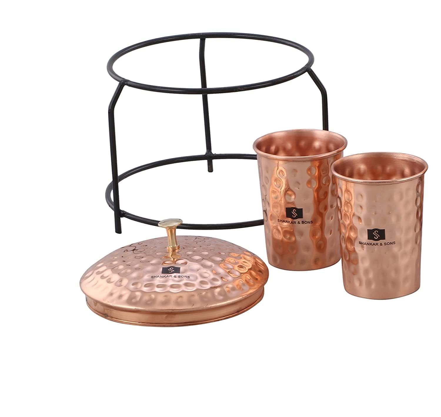 - Hammered Copper Water Dispenser (Matka) with 2 glass ( 300 ML ) and stand