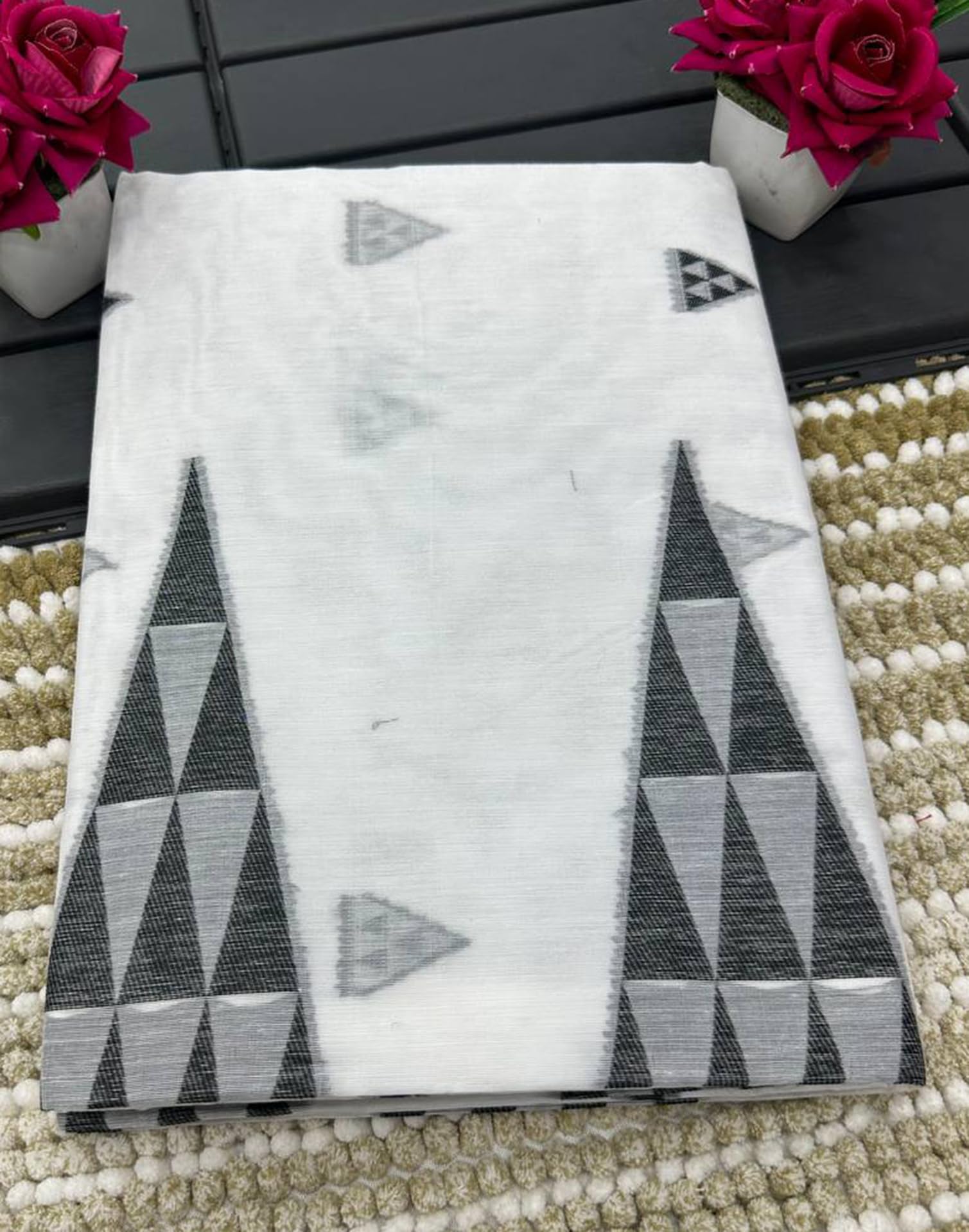 SIRIL Women's Cotton Silk Jamdani Jacquard Saree With Unstitched Blouse Piece (3684S132_White Black)