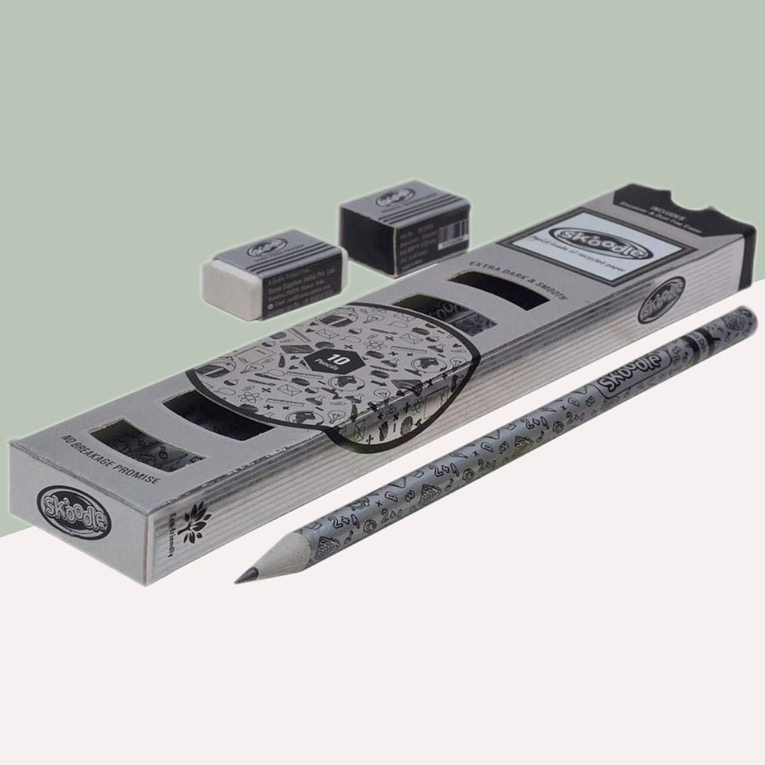 Recycled Paper Pencils: SKOODLE takes a sustainable approach by crafting these pencils from recycled paper. Every stroke you make is not just a mark on paper but also a small step towards a greener planet.