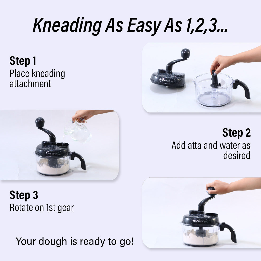 Chop onions, tomatoes, carrot, cucumber and more with ease. The kneading blade attachment is used for kneading atta easily and hygienically without using your hands.