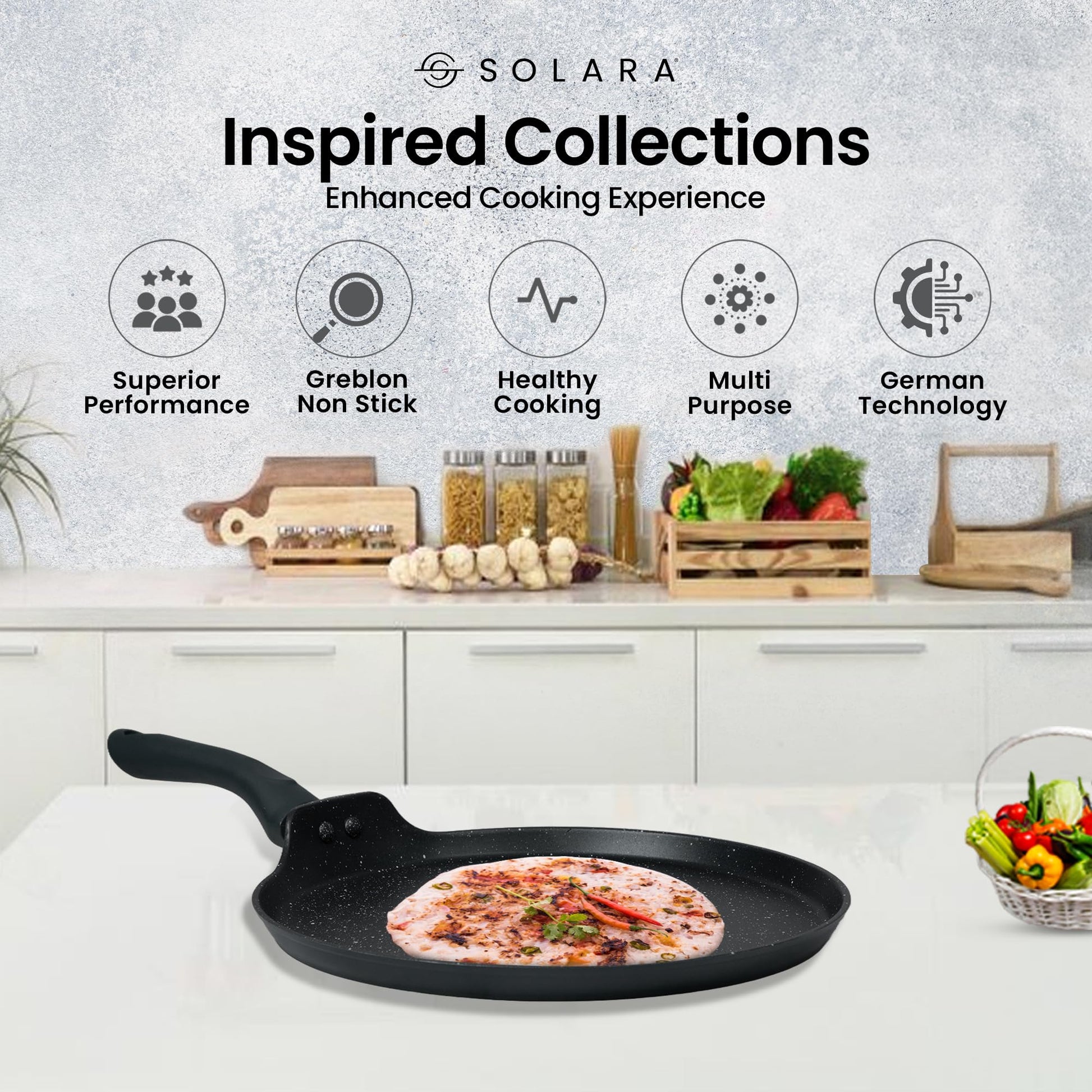 - Enhance your culinary experience with the SOLARA Granite Tawa– where quality, health-conscious design, and style converge in a remarkable and toxin-free kitchen essential.