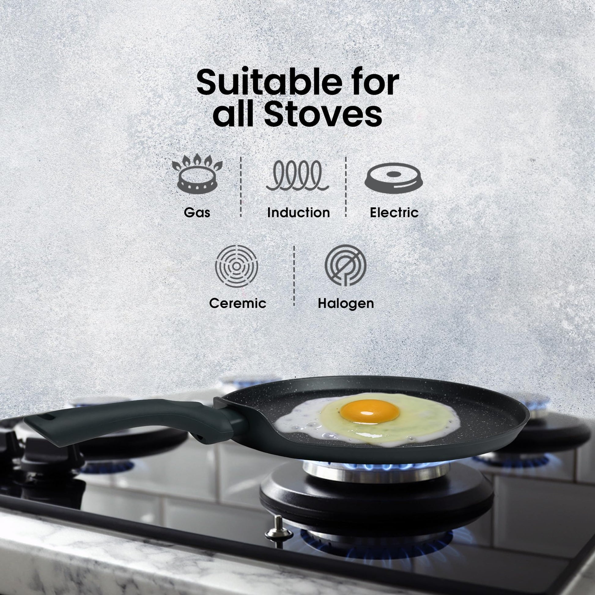 - Induction Ready: The SOLARA Granite Tawa can work with any cooking surface including induction cooktops, making it a versatile addition to any kitchen Easy Maintenance: Benefit from hassle-free cleanup thanks to the Greblon coating – simply wash with mild detergent and warm water. For more stubborn residues, soak for 10 mins in warm water.
