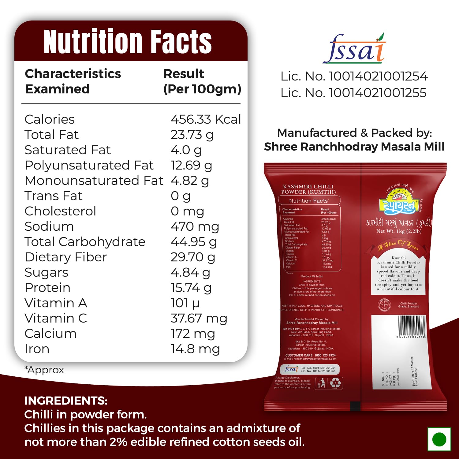 - Enhance your dishes with Spyran's Kashmiri chilli / Chilly powder, recognized for its bright red color and mild heat. Free from artificial colors and preservatives, it delivers the authentic taste of Kashmiri chilli. Ideal for Indian curries, and tandoori dishes.