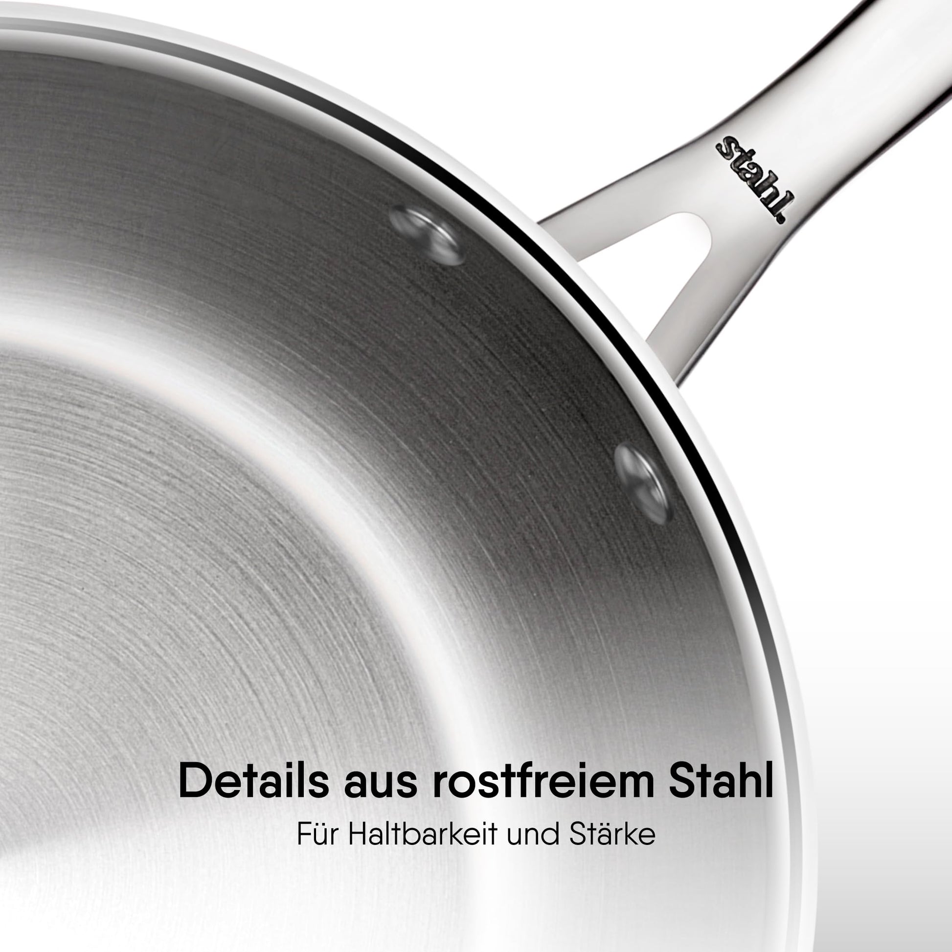 Stahl Artisan Triply Stainless Steel Fry Pan with Lid, Induction & Gas Stove Compatible Frying Pan, Omelette Pan, Egg Pan, 1.1 L, 20 cm