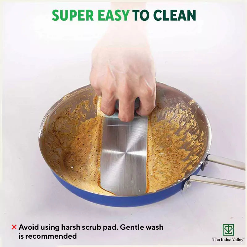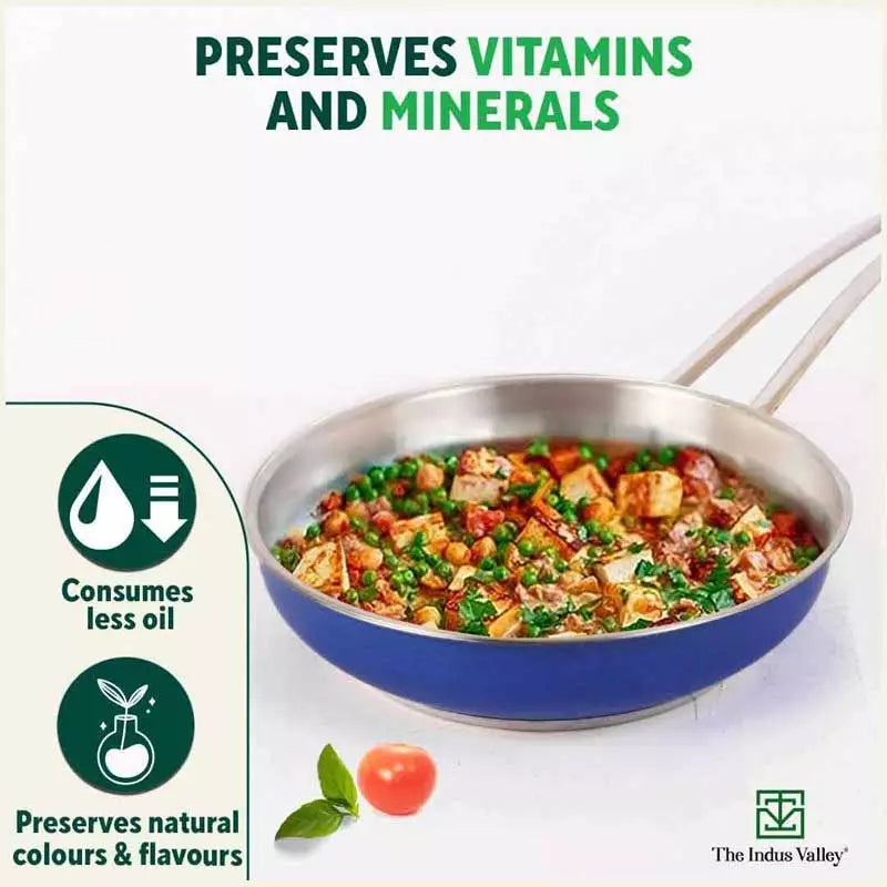 Tri-Steel Premium Stainless Steel Fry Pan, Tri-ply (3 Layer) Induction Bottom, 1.5L, Blue