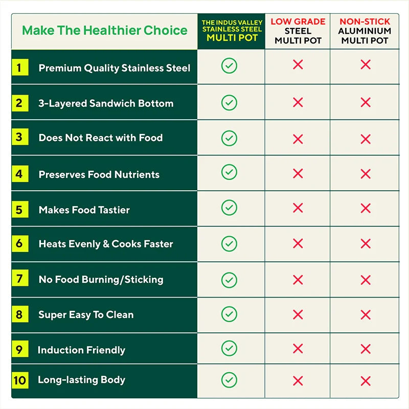 💪100% FOOD SAFE: The Indus Valley’s Premium Stainless Steel Idli Pot/Multi Pot/Steaming Set with 5 Plates is 100% toxin-free. It has no chemical or artificial coating.