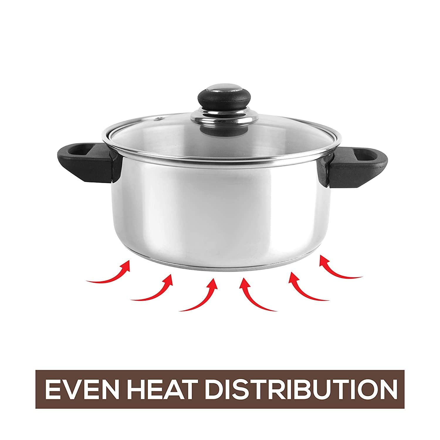 - Tempered-glass lids make it easy to monitor the cooking process. Riveted Stainless Steel handles with an anti-slip finish, designed for comfort and safety.