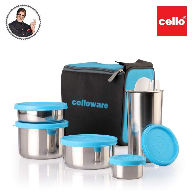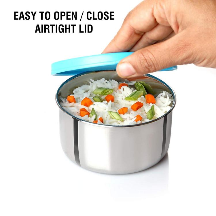 - The Steelox Steel Lunch Box Lunch Box Set in blue offers a versatile 4-piece and 5-piece solution for your meal storage and transportation needs