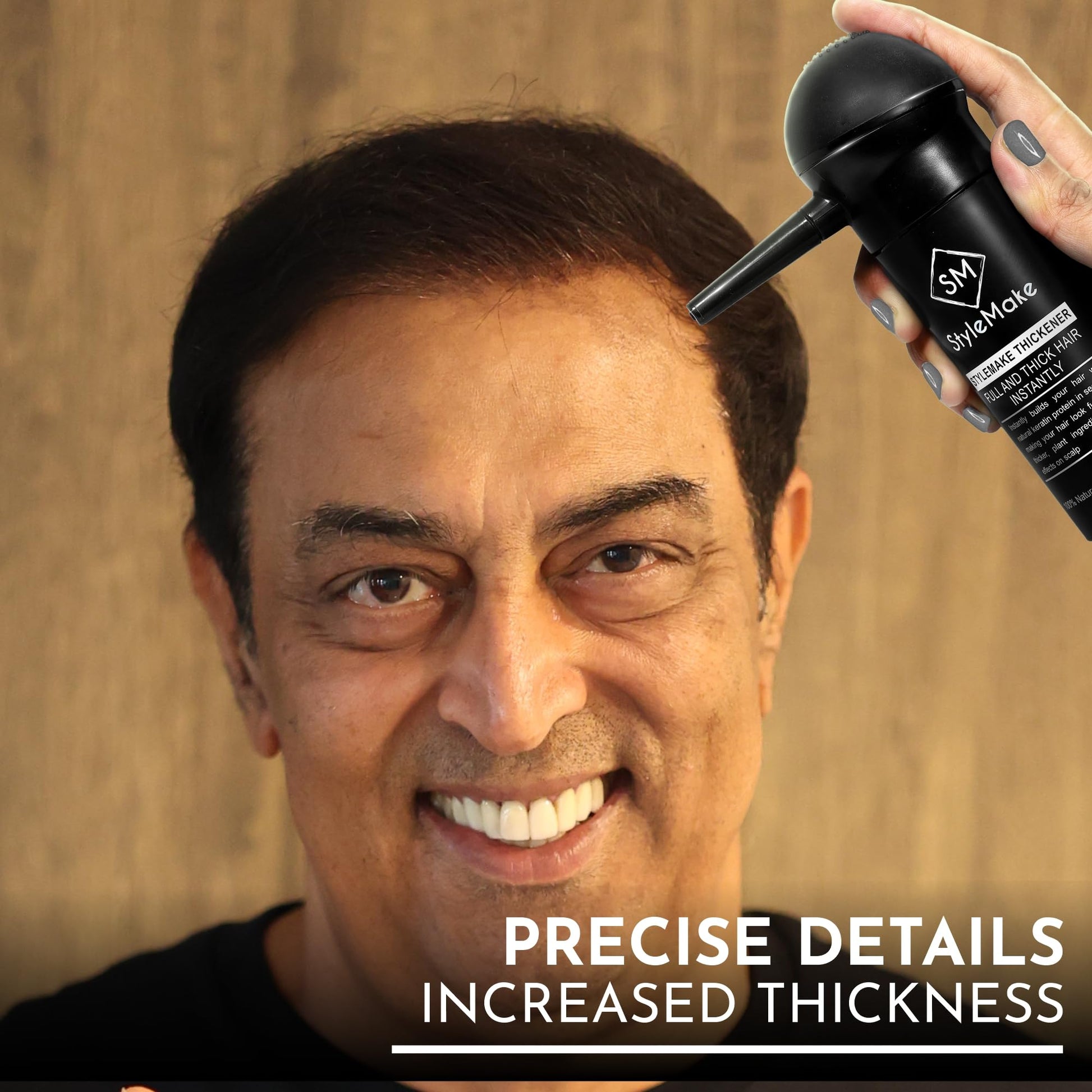 - EASY APPLICATION WITH PUMP: Get fuller hair in under 30 seconds. For best results with our StyleMake Thickener with StyleMake Applicator for men and women, use a hair styling spray to finish for longer-lasting results.