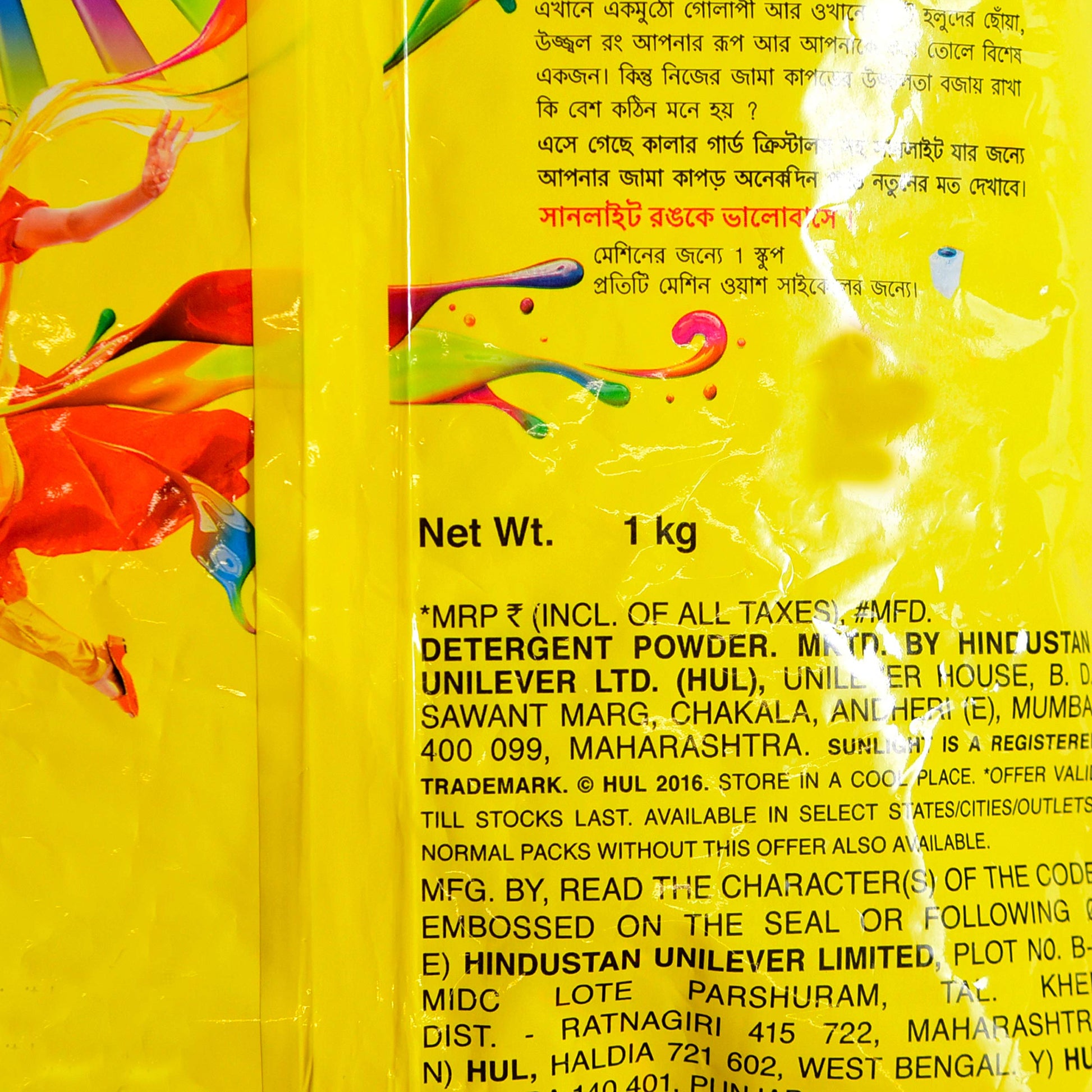 Details: New Sunlight Powder with Color Guard Technology protects your clothes in every wash to keep them bright & colorful for longer. Now your clothes will retain their glaze and feel like new even after 40 washes.