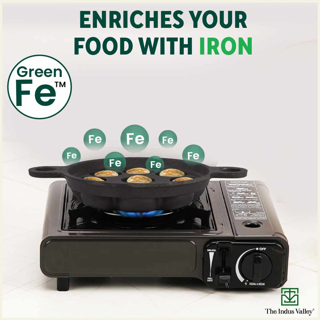 💪100% HEALTHY: The Indus Valley Premium Cast Iron Paniyaram/Appe Pan 9 PIT is 100% food-safe and toxin-free.