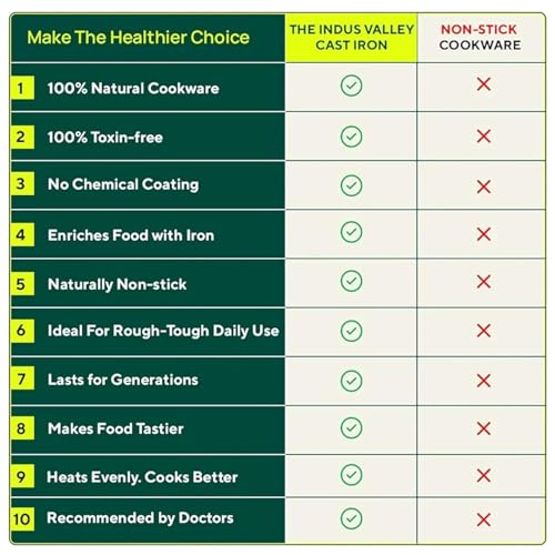 - 💰Money saving investment: Cast iron cookware is long lasting. Why waste money on non-stick tawa every 2 years when you can have a long lasting Cast tawa