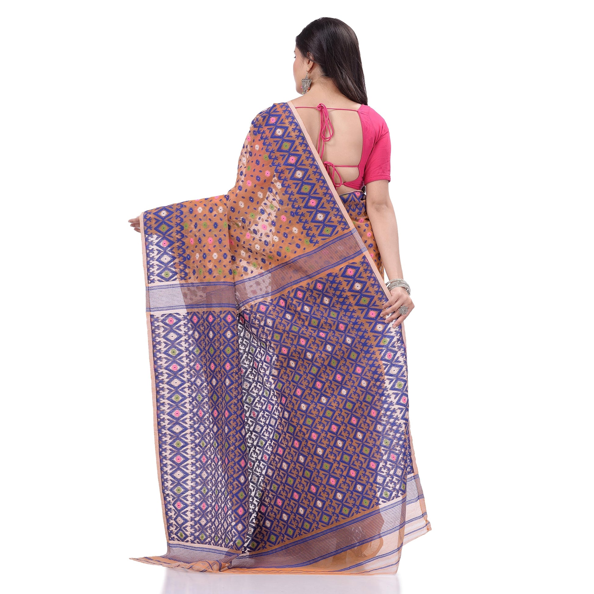 TANTLOOM Sparkle Diamond Resham Dhakai Jamdani Bengal Woven Handloom Pure Cotton Saree for Women Without Blouse Piece