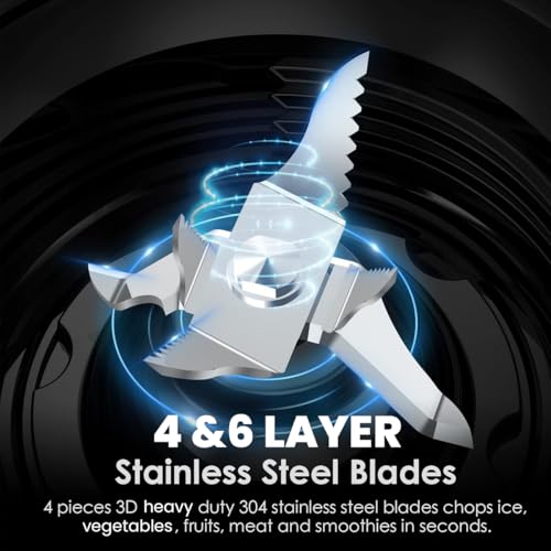- Detachable Stainless Blades: The upgraded 6-leaf cross and 4-leaf flat blades and frothing Blade allows the smoothie maker & grinder to blend and extract nutrients easily. Detachable blades are easy to clean.