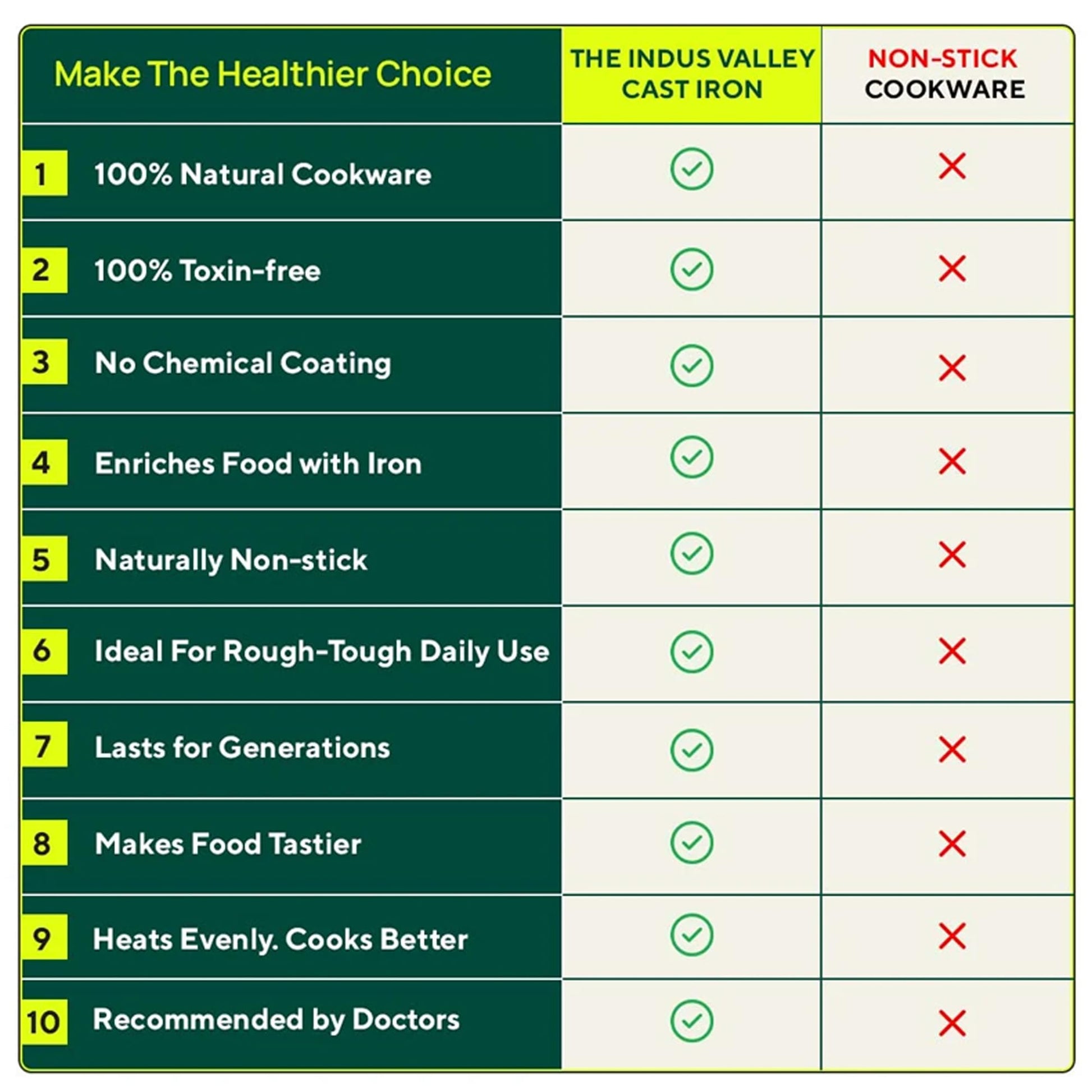 - 💪HEALTHY - Cast iron Tawa are the best when compared to other chemical coated non-stick Tawa's. They add iron to the food that makes food even healthier.