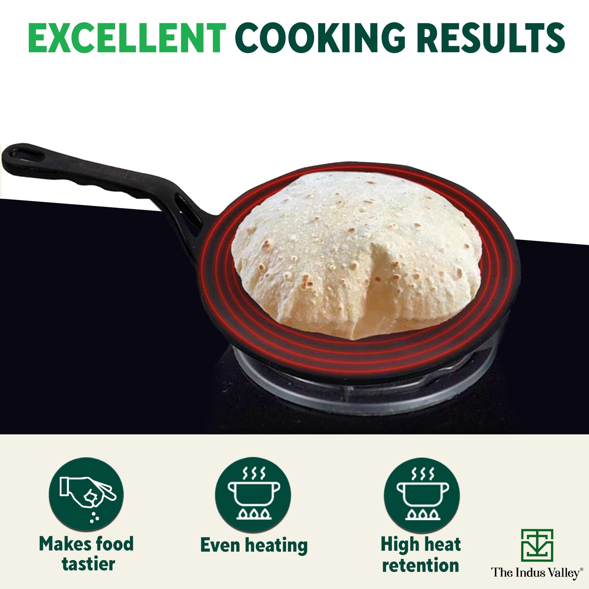 - 😋TASTY - Expect improved taste when cooking in cast iron Tawa. Dosas & Chapati's taste much better in cast iron Tawa compared to other vessels.