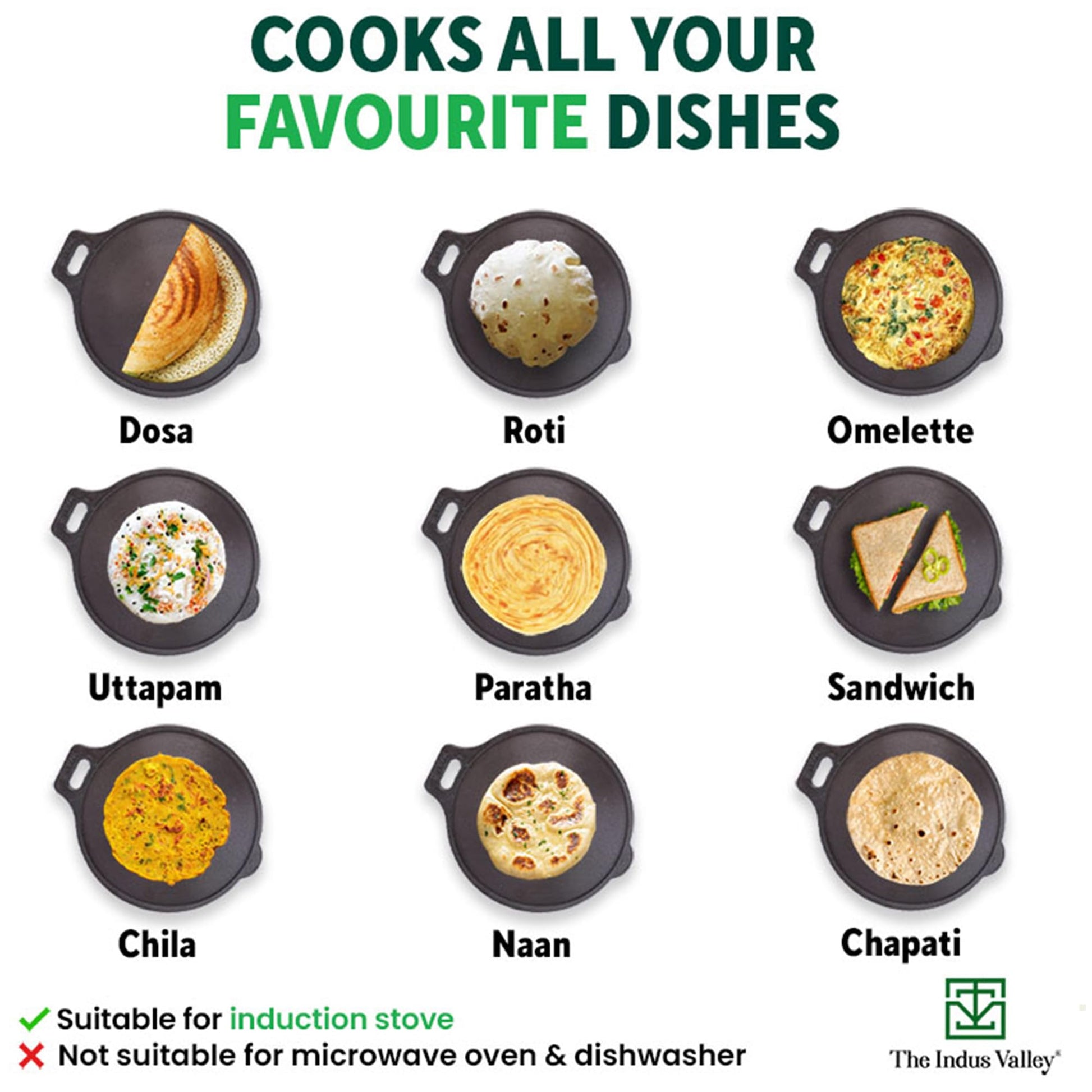 - 😋Make tastiest Dosa with The Indus Valley’s cast iron tawa. Feel the difference in taste of Dosa’s made in Cast iron tawa. Restaurant chef’s use cast iron tawa to make Dosa, Roti, Chapathi for mouth watering dishes