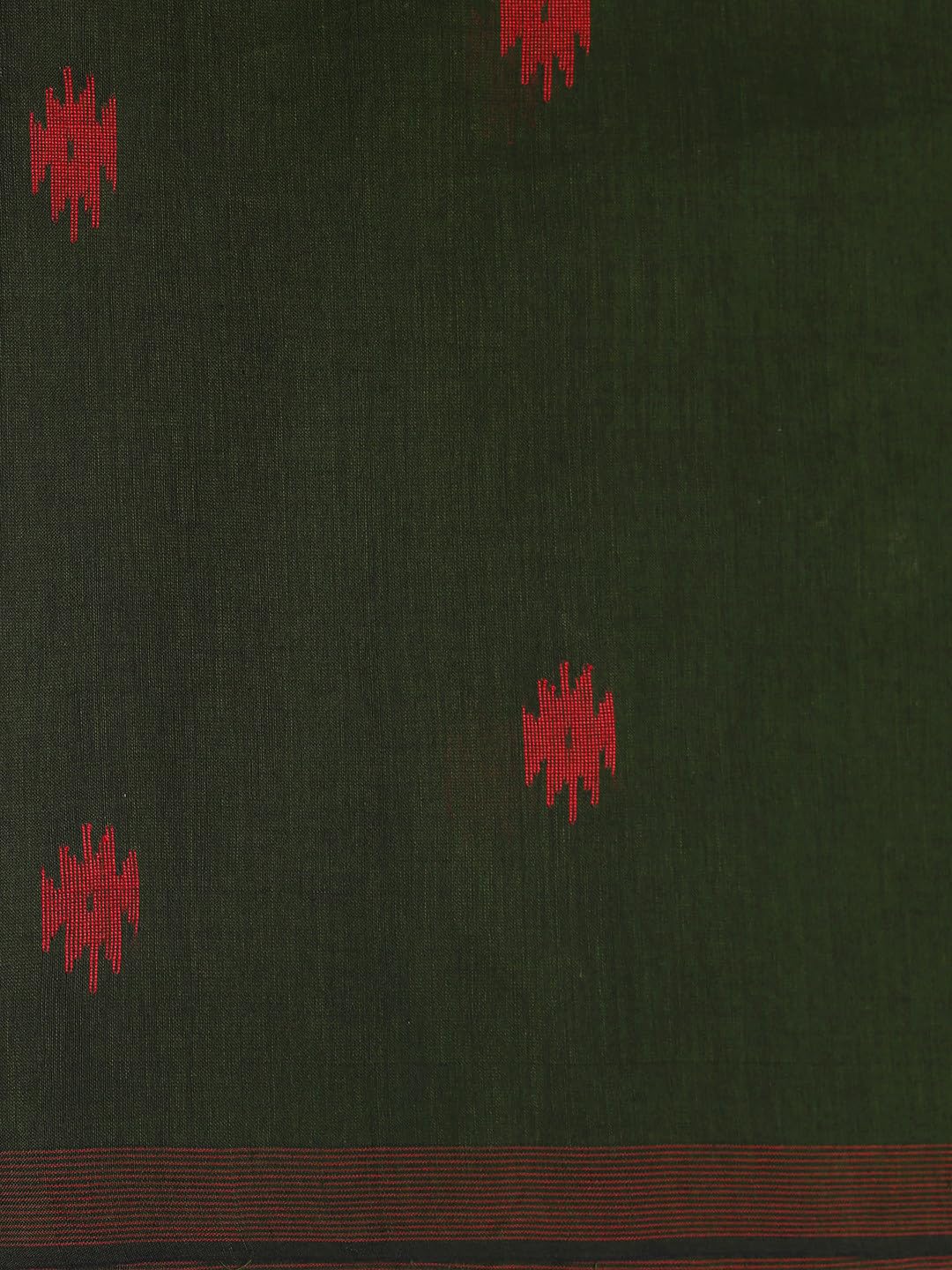 THE WEAVE TRAVELLER Handloom Green Cotton Jamdani Saree With Attached Unstitiched Blouse