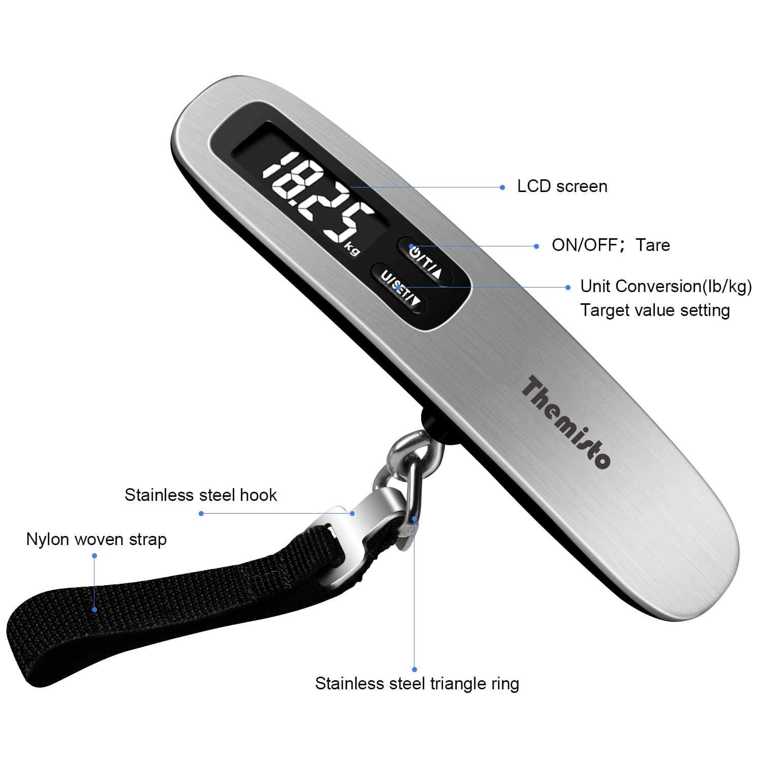 Themisto TH-WS10 Digital Luggage Scale with Target Value Setting (50kg), Silver