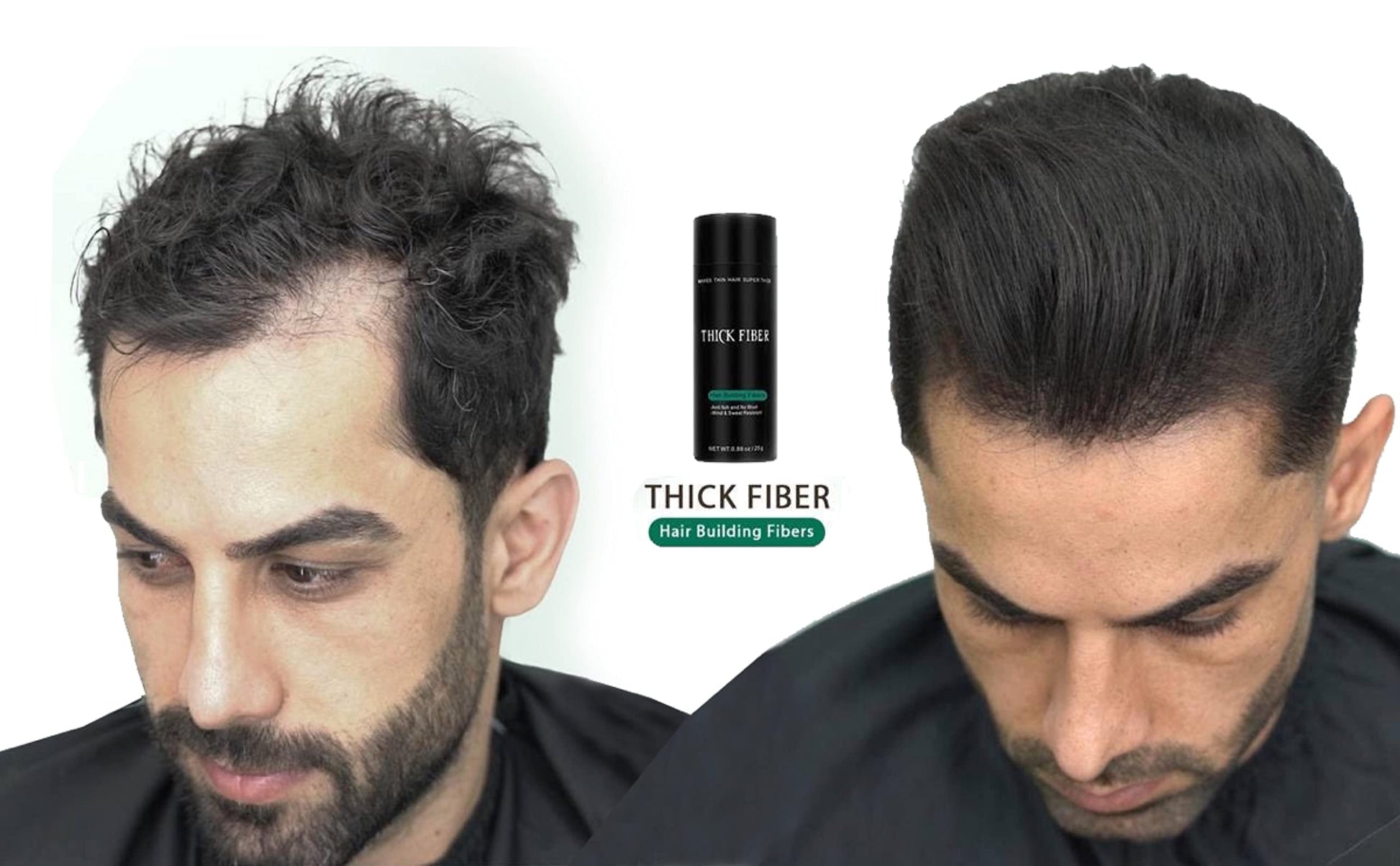 - EASY TO APPLY: Shake the bottle sideways before you apply THICK FIBER into thinning areas. Apply the hair fiber powder in a salt and pepper direction on dry hair. Gently pat hair to disperse Hair Fibers. For best results with our hair filler for men and women, use a hair styling Spray to finish for longer-lasting results. Please note this product is for spots where the hair is thinning, and not for completely bald spots.