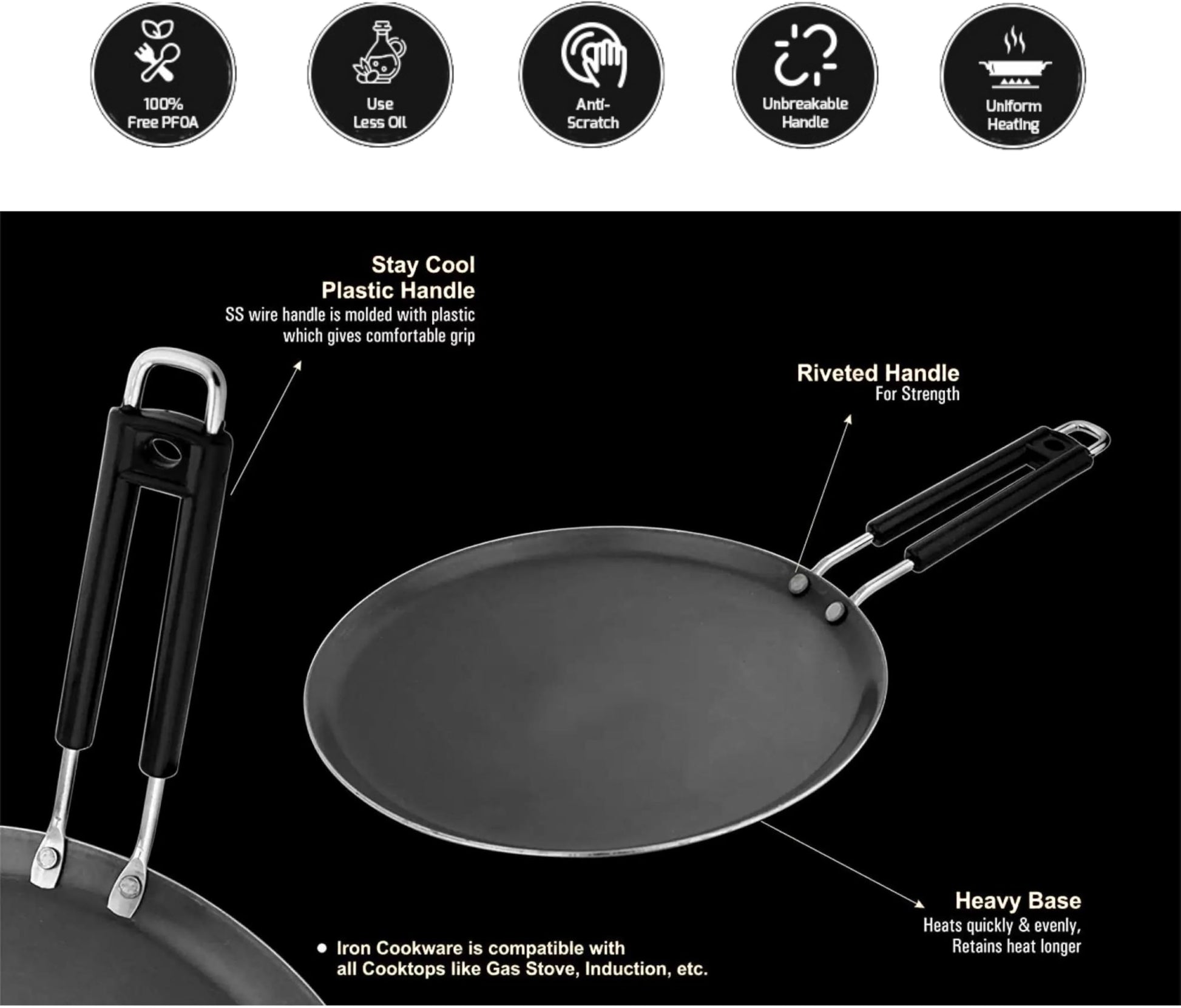 Details: This Cooking Utensil is a Part Of Induction & Flame Friendly Cookware and is Made from High Quality Cast Iron, Which Has A Very Good Tendency Of Conducting Heat And Electricity. Compatible with your Household: This Utensil is Highly Induction-Friendly & Flame Safe for Easy Usage on Both, Induction Cook-Top & Normal LPG Gas Stove. Durable Handles: It also Features Heat Insulated, Ergonomic & Comfortable to Hold Handles. --- Note : - Product Design, Handle Shape And Color May Vary As Per The Availability. ---