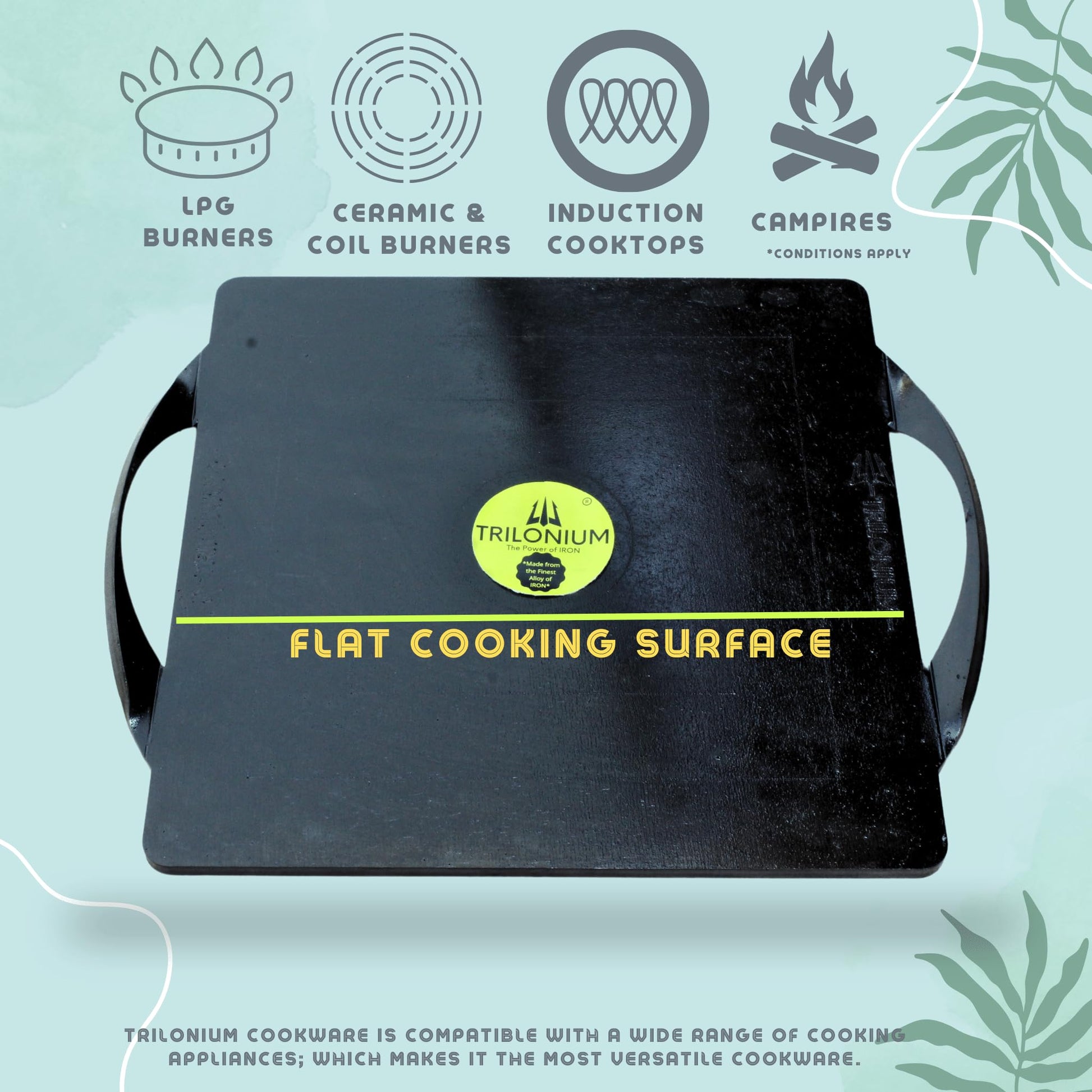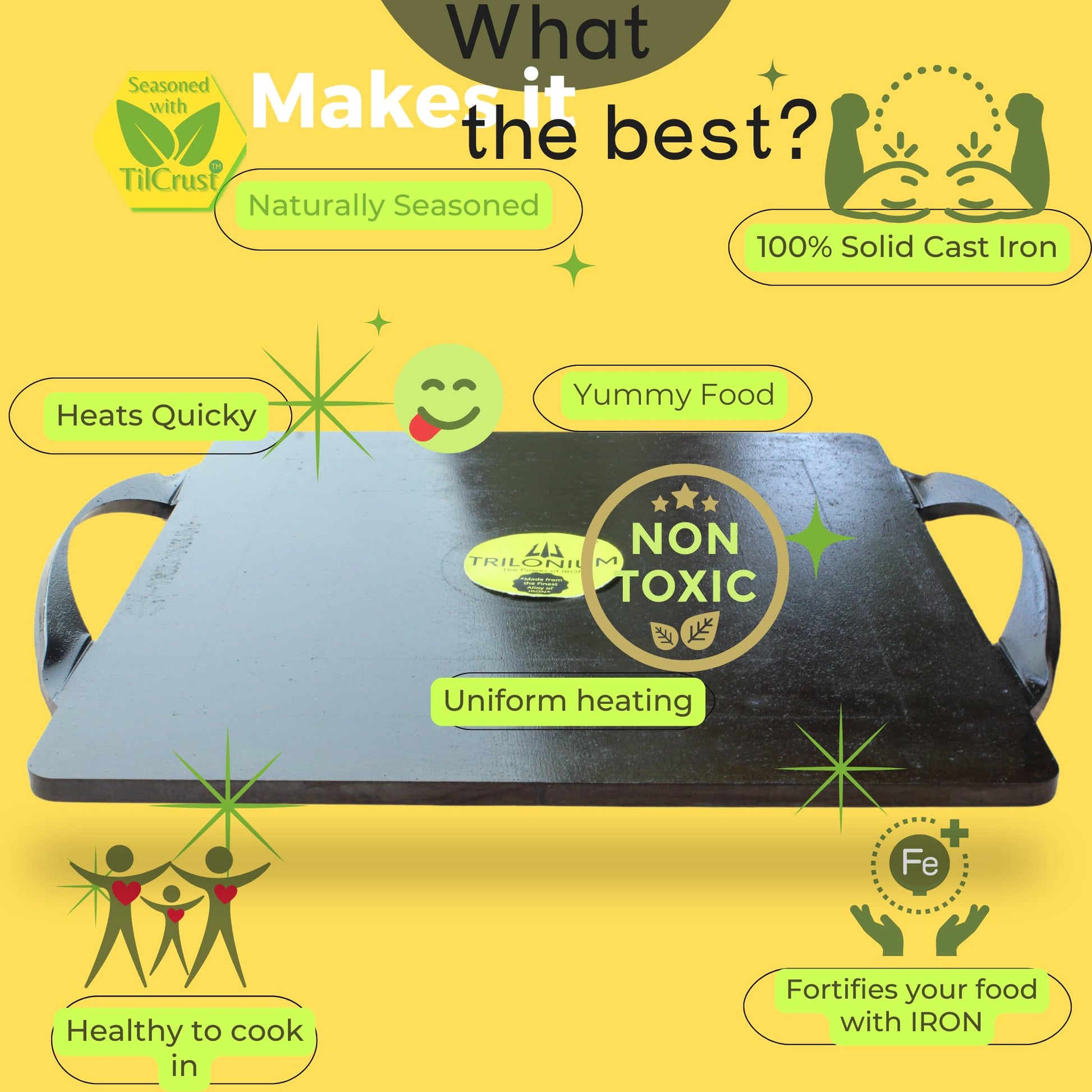 Trilonium Triple-Seasoned Iron Boulder Square Griddle pathri Tawa 30 x 30 cms | Ultra Smooth | Weights 5.8 Kgs