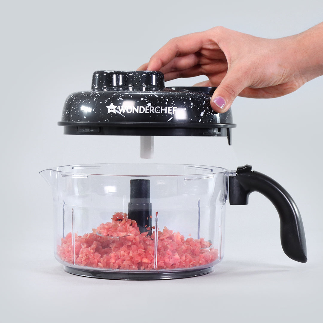 Use the gear box to rotate the first and fourth gear while chopping fruits and vegetables