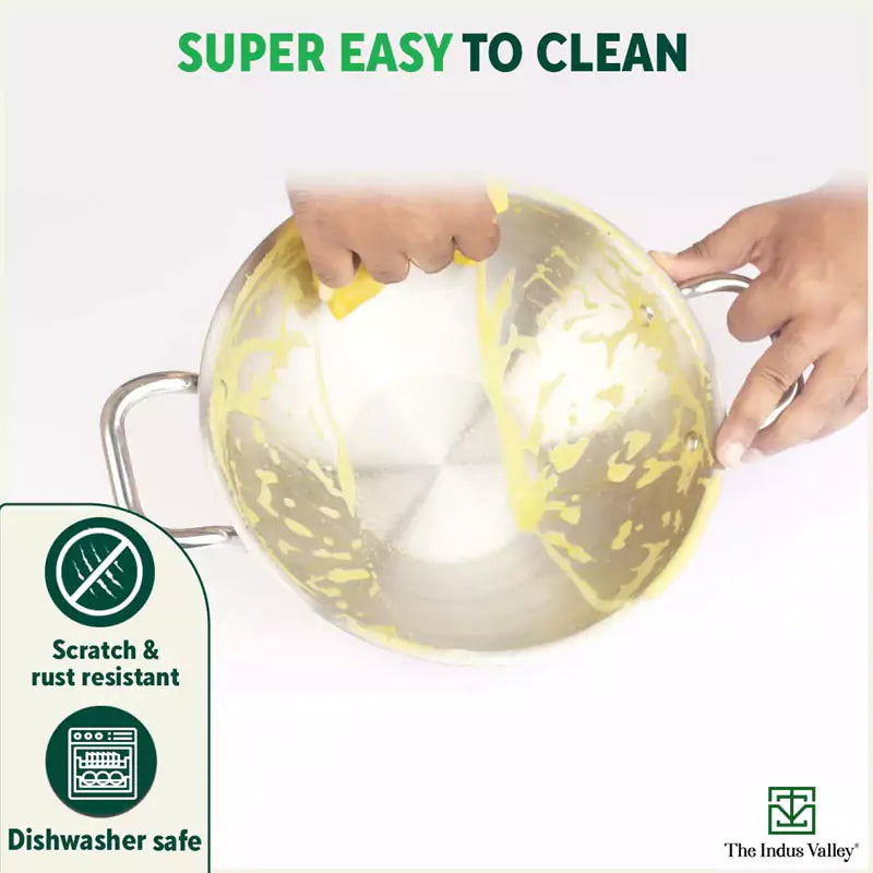 🥄SCRATCH RESISTANT: This tri-ply kadai can resist damages and scratches. No worries about kadhai rusting or using metal ladles or spatulas!