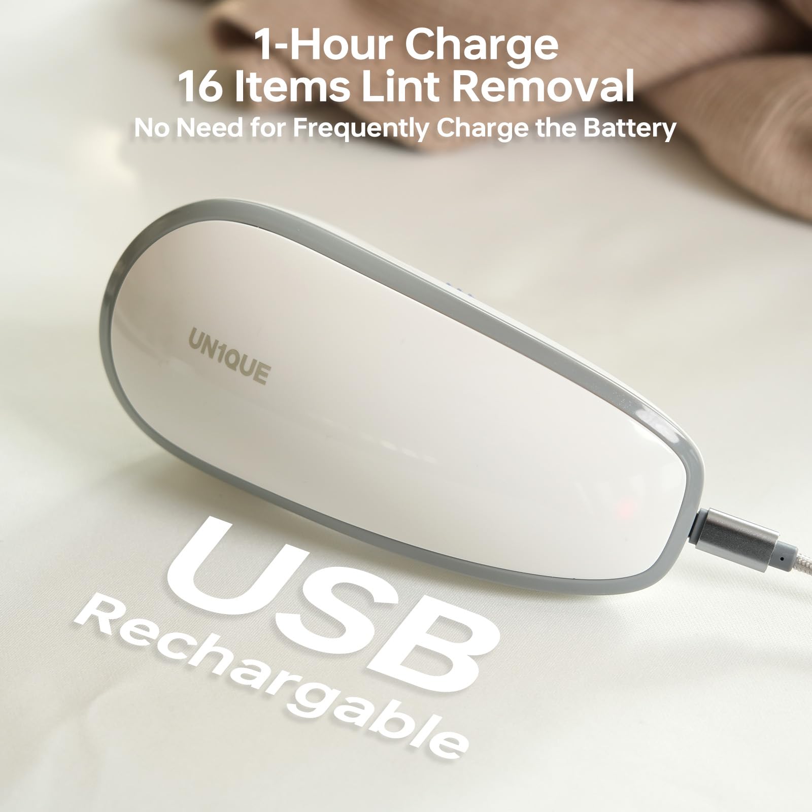 UN1QUE Rechargeable Lint Remover, Six-Blade Design Lint Remover for Clothes, USB Charging Port, Supports Cordless Use, Lint Remover for Woolen Clothes, Blankets, Sofas, Curtains, etc.-White