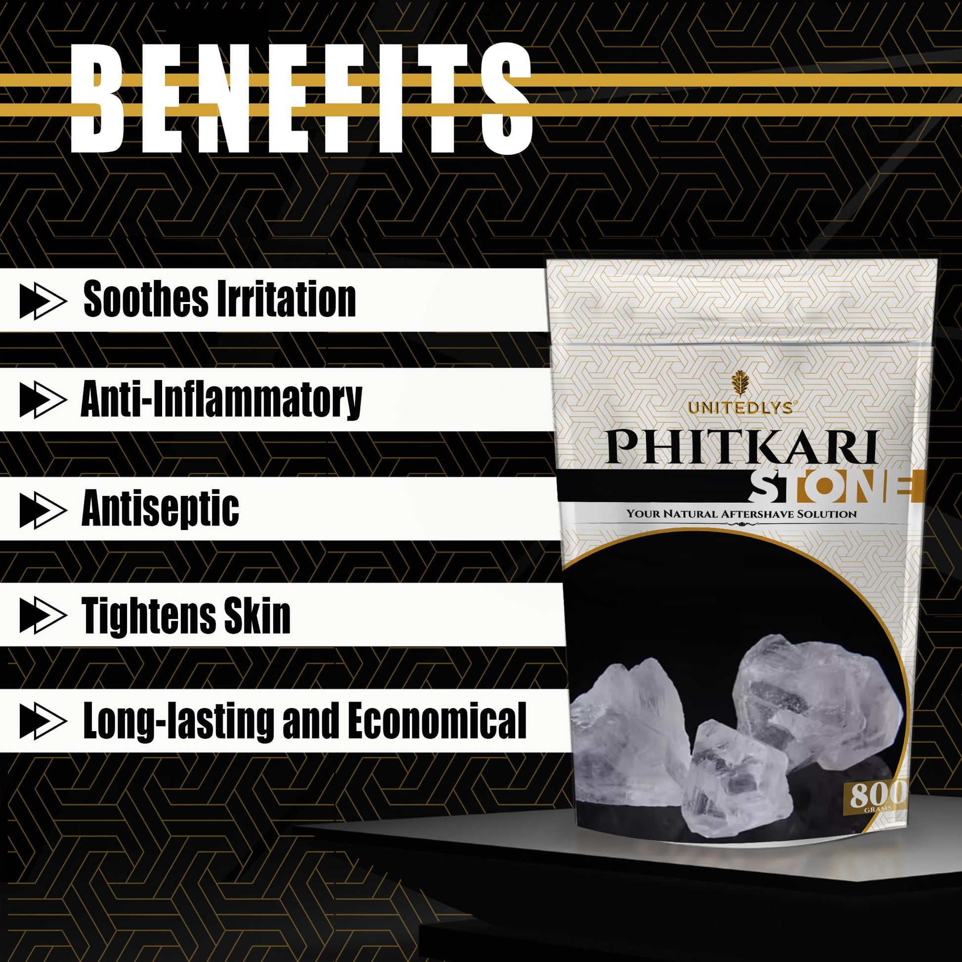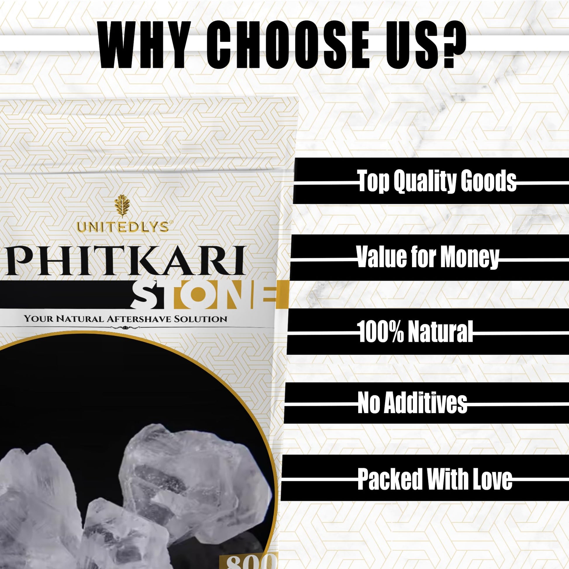 Unitedlys Organic Phitkari Alum Stone for Face 800G | Fitkari Stone for Skin Tightening, Water Purification, Shaving & Teeth Care | Premium White Crystals Fitkiri Alum Stone | Gentle & Effective