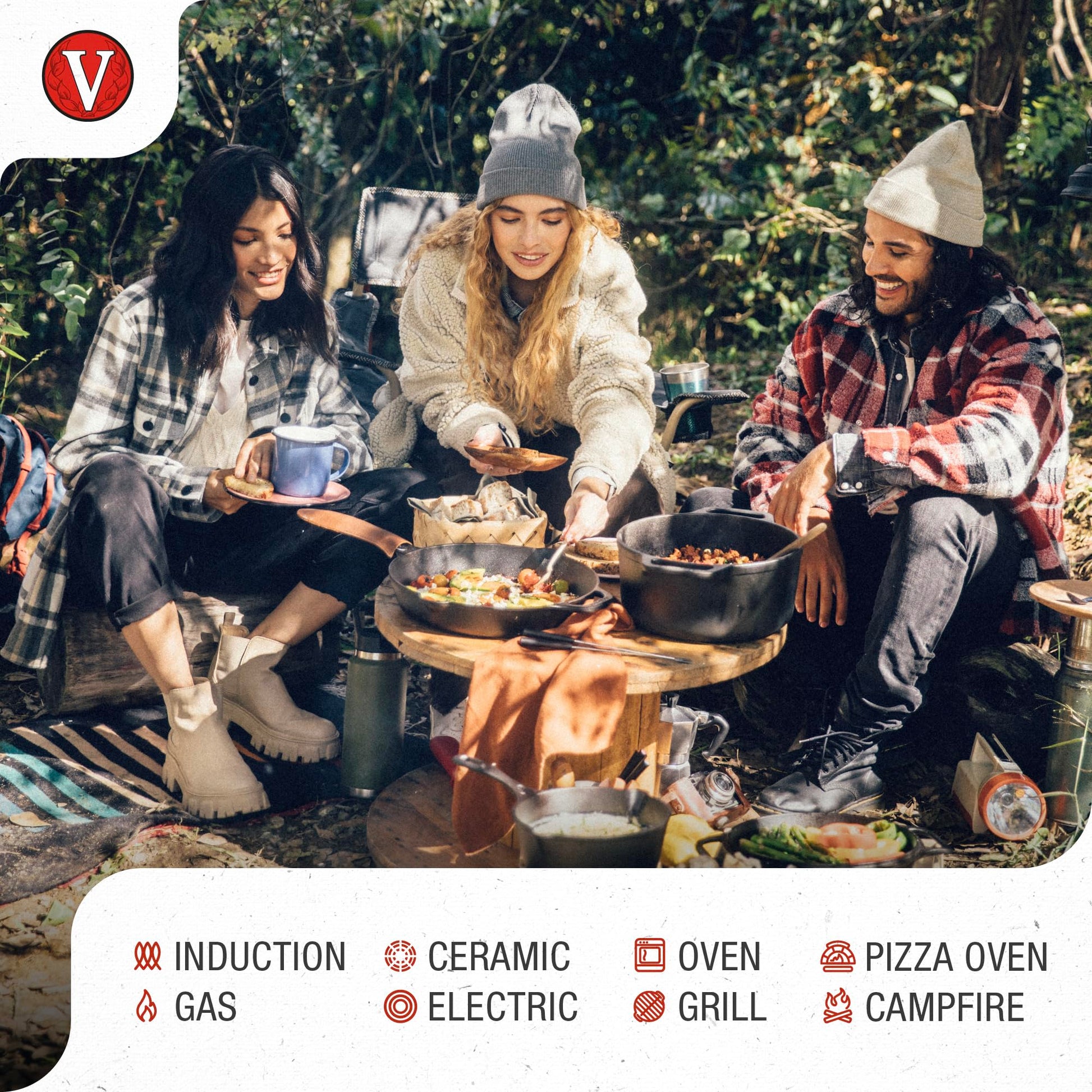 - VERSATILE PAN: Our Cast-Iron Skillet is made with natural materials and can be used almost anywhere, such as on the stove, on induction cooktops, in the oven, over a campfire, or on a grill. Your food will stay warm for longer and be infused with beneficial natural iron.