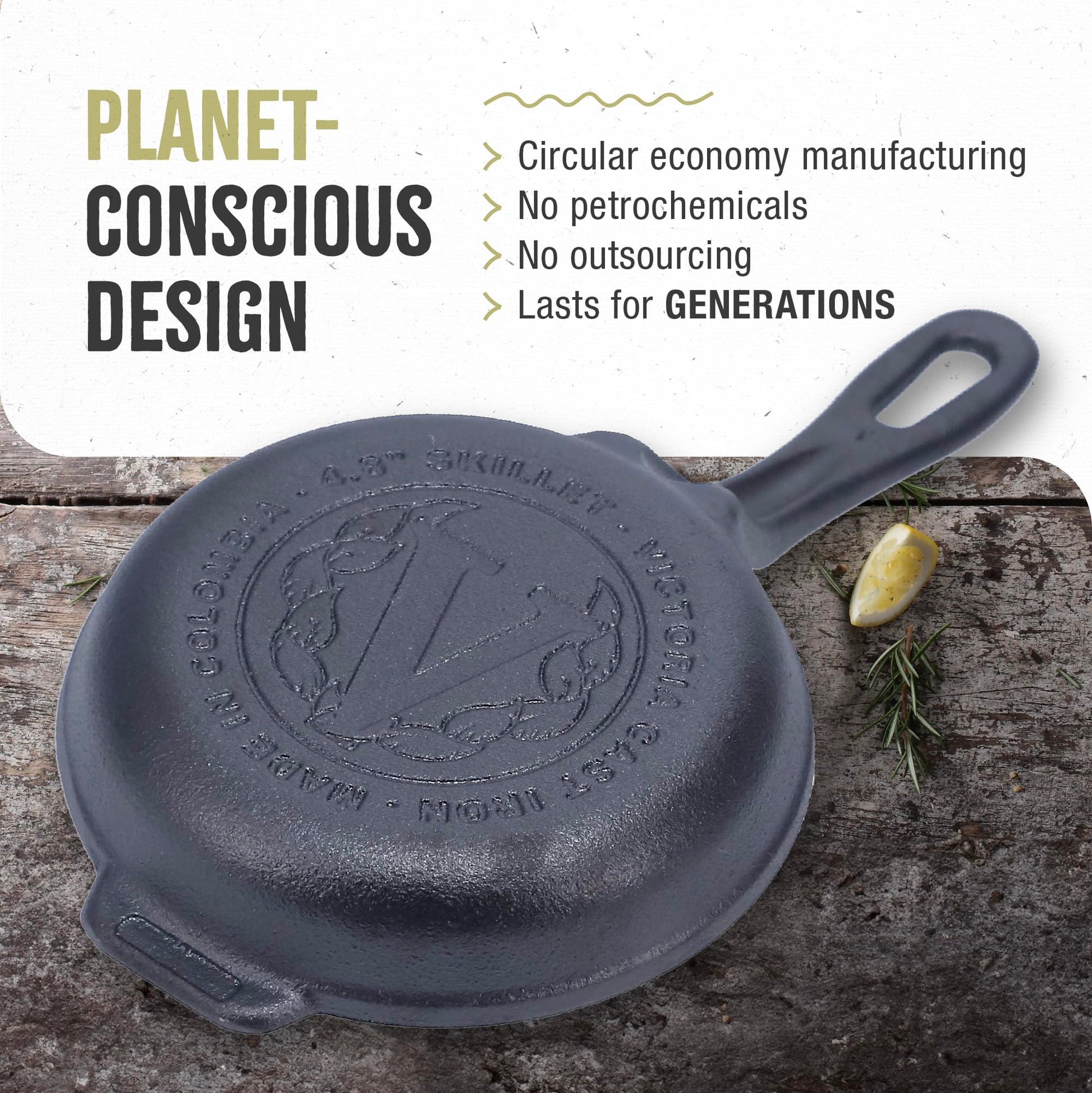 Victoria Mini Skillet Cast Iron Small Frying Pan Seasoned with 100% Kosher Certified Non-GMO Flaxseed Oil, 4.7", Black