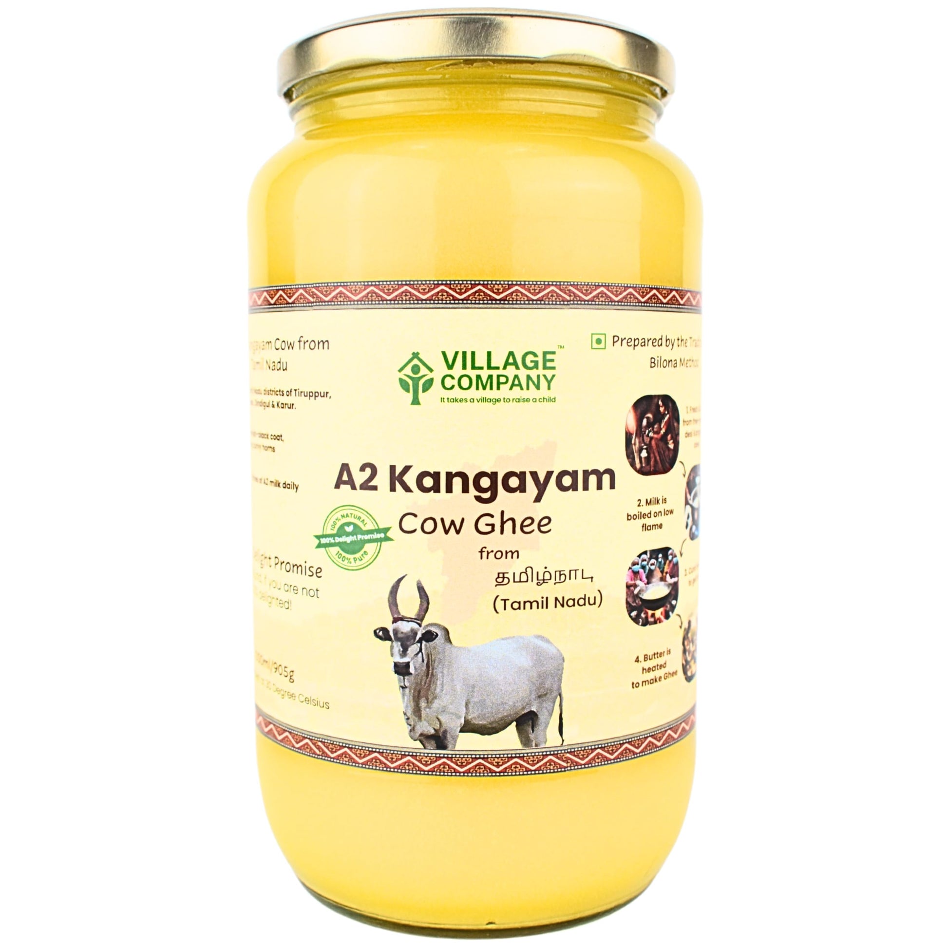Village Company A2 Bilona Desi Cow Ghee | Bilona Method | Premium, Organic, Traditional | Grass Fed | Kangayam Desi Cow | Lab-Certified | Glass Jar 1L