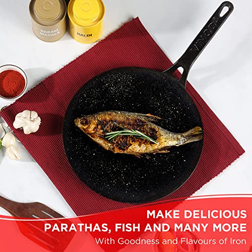 Vinod Legacy Pre-Seasoned Cast Iron Dosa Tawa of 28 cm,Dosa Kallu, Roti, Chapati Tawa Pan,Non Toxic,Enamel Free and Coating Free,Gas Stove Friednly,Black,1 Pc