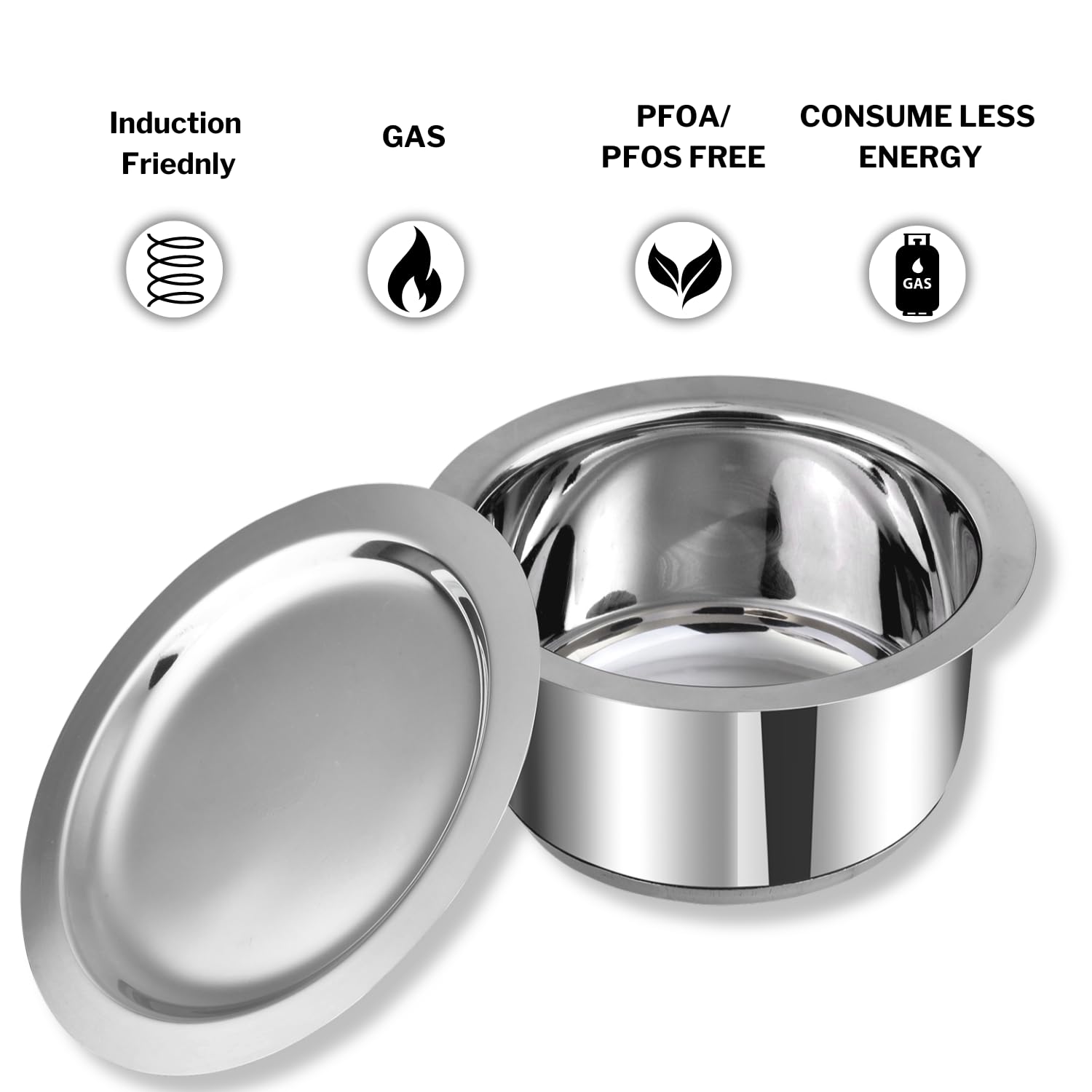 Vinod Stainless Steel Capsule Bottom Tope/Patila Combo Set Of 3 Pcs-2.7 Liter(14Cm Diameter),3.4 L(15Cm Diameter)And 4 L(16Cm Diameter)-Silver