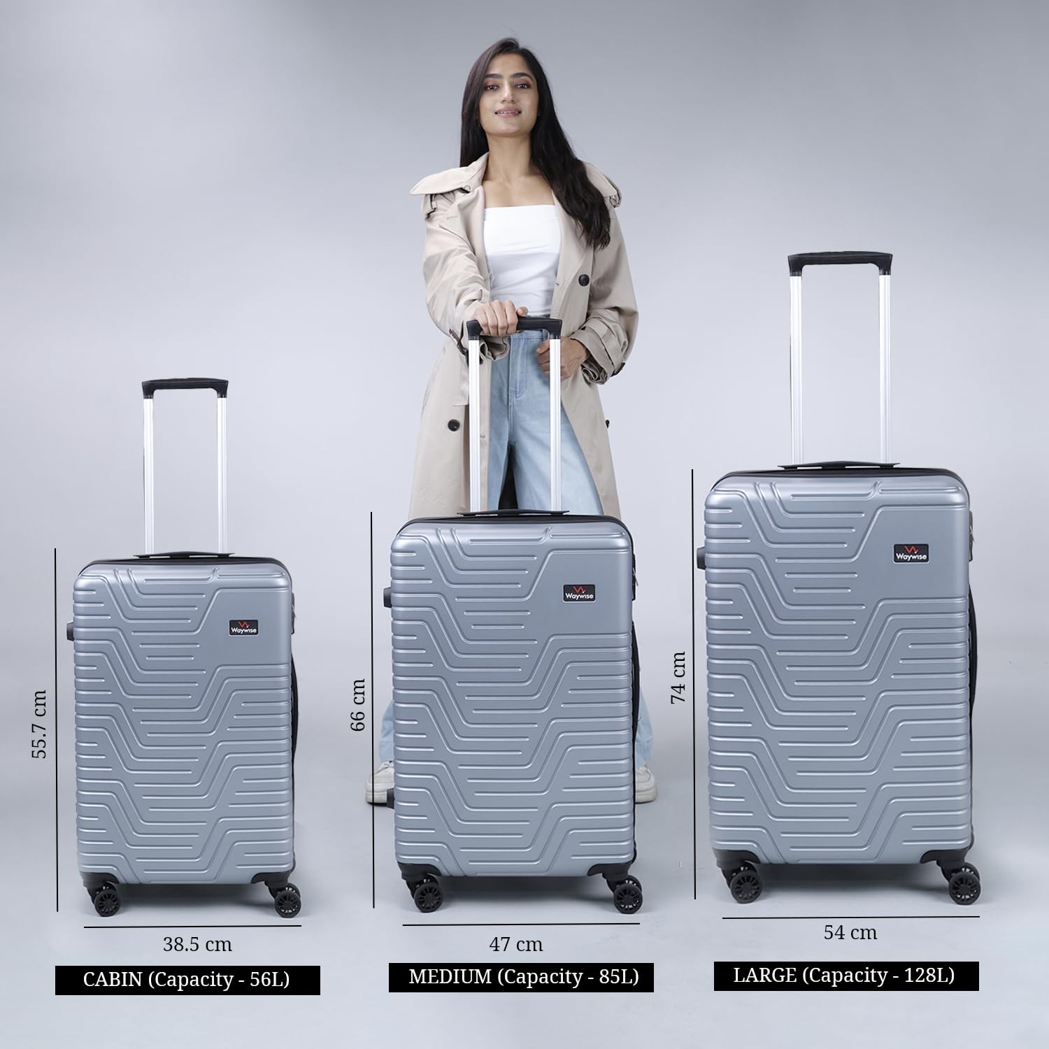 WAYWISE ScaleX Checkin Luggage|India's First Built in Weighing Scale Handle| M-65cm|TSA Lock | Poly-Carbonate Hardsided Anti-Scratch| 8 Wheel Luggage |with Laundary Bag |5 Years Warranty (Silver)