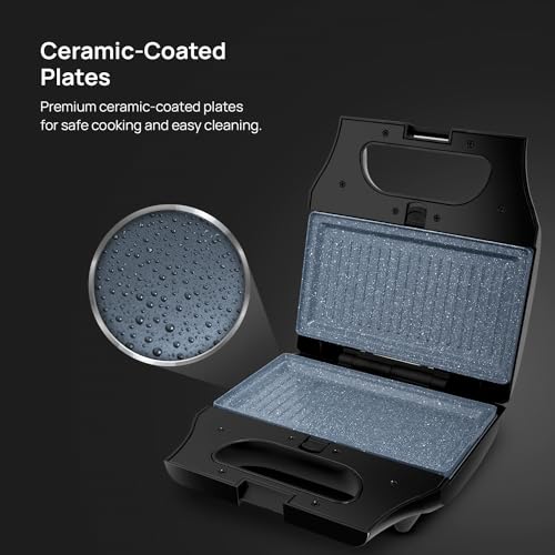 wipro Elato Bs302 800 Watt 3-In-1 Detachable Sandwich Maker, Removables Plates For Toaster, Griller & Waffle Maker, Non-Toxic Ceramic Coating,2 Year Warranty, Regular Bread Size For 2 Slices, Black