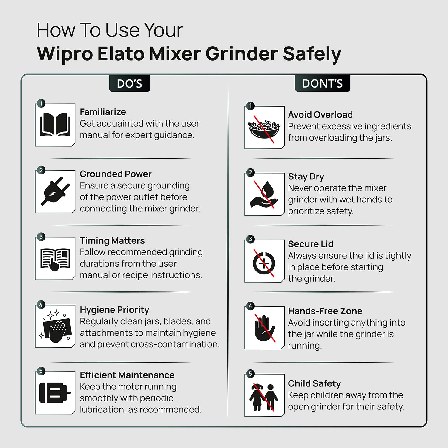 - 2 years product warranty and 5 years motor warranty by Wipro