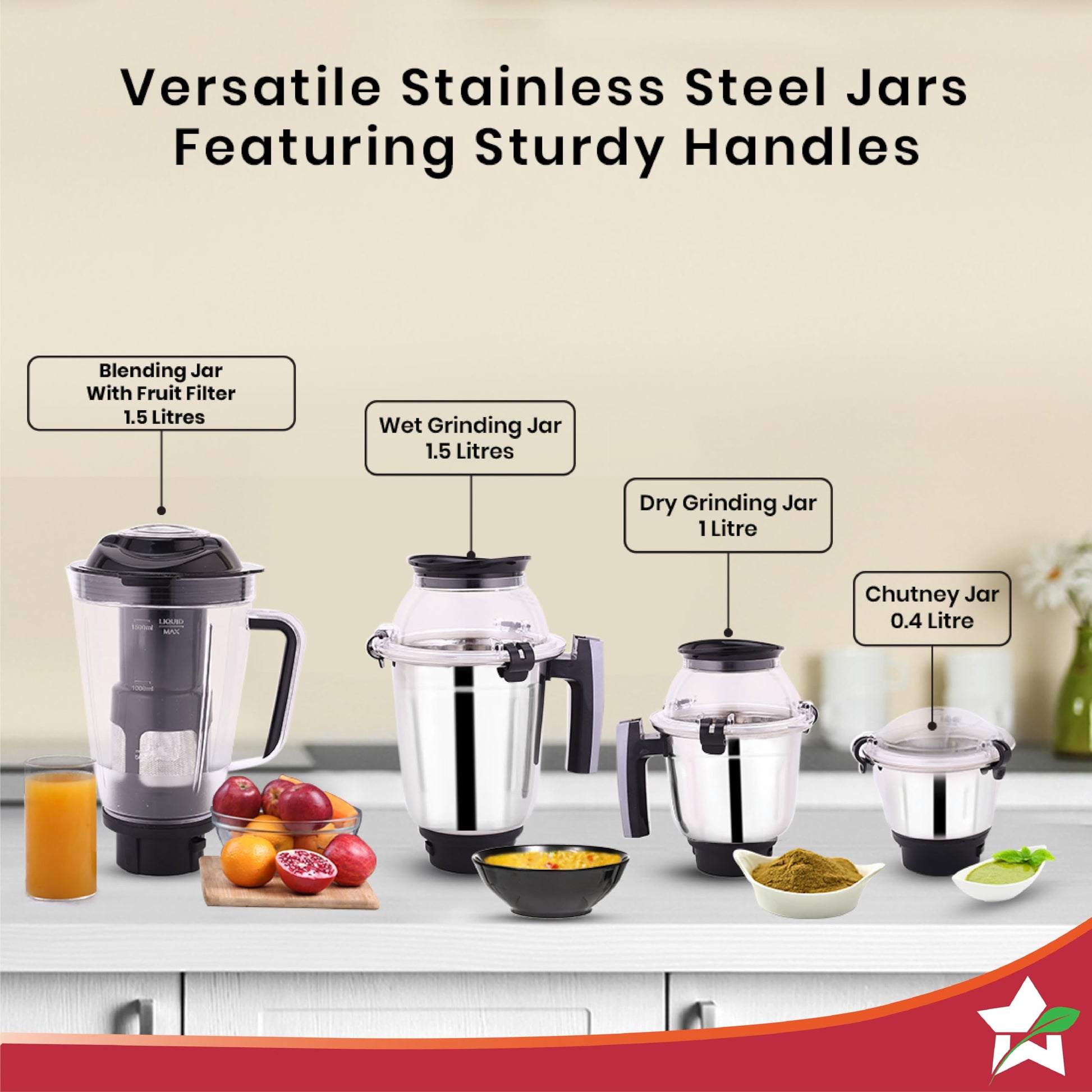- Variety in blending/grinding: Now use the toughest of ingredients to make amazing podis, chutneys, masalas, batters, purees, pastes, milkshakes, smoothies and much more with ease.