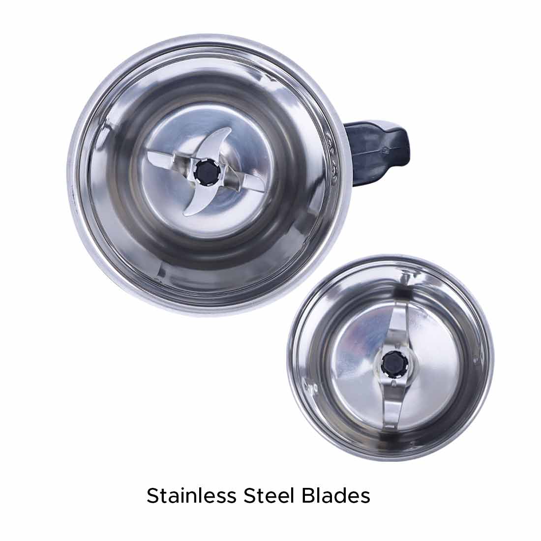 - Superior quality stainless steel blades for smooth wet and dry grinding of ingredients