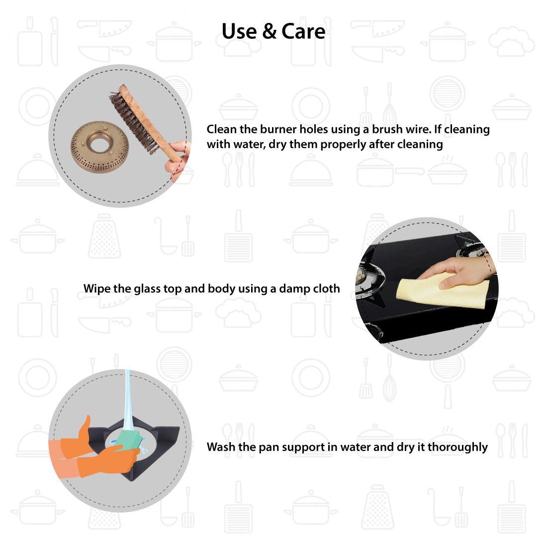 Ultima 2 Burner Manual Glass Cooktop | 6mm Toughened Glass Cooktop | Stainless Steel Drip Tray | Anti-Skid Legs | Large Pan support | Manual Ignition | 360 Degree Revolving Nozzle | Black Steel frame | 2 Year Warranty | Black