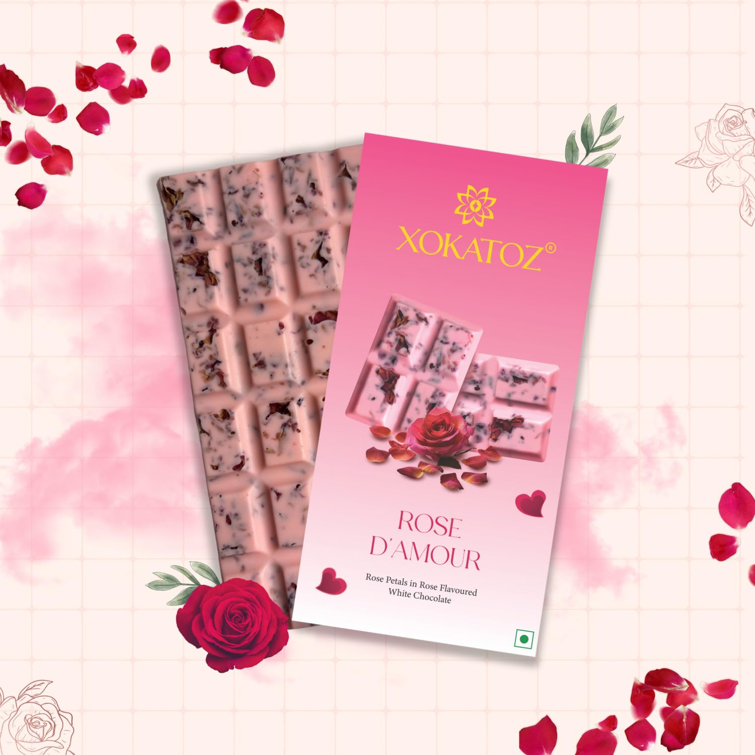 - Express your love with Xokatoz Rose D'Amour: A luxurious blend of rose petals in velvety white chocolate resulting in floral notes blooming on your palate. Savor special moments with a loved one!
