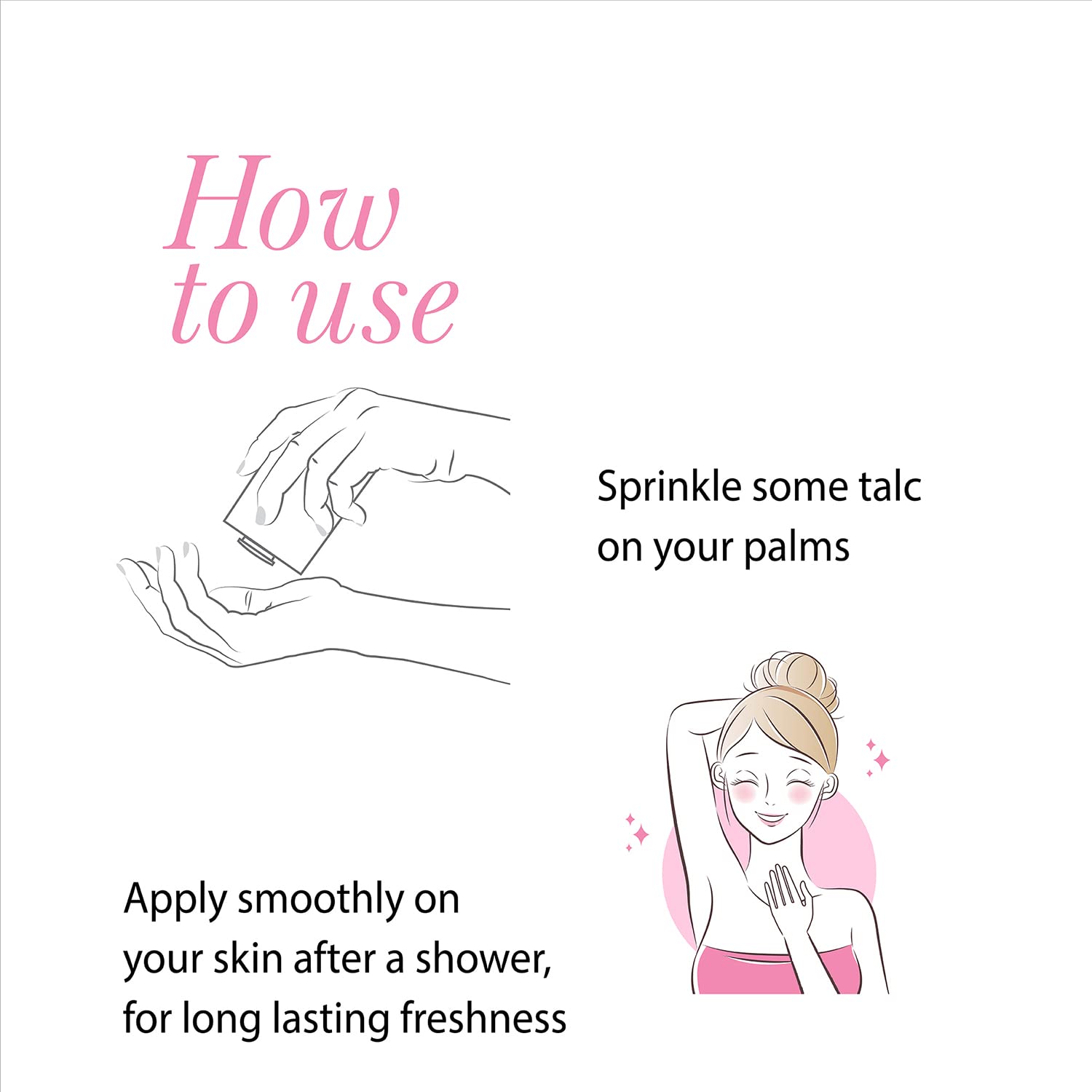 - Silky Softness: This talcum powder leaves your skin velvety soft, caring for it with natural ingredients